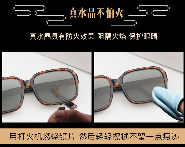 천연 크리스탈 선글라스 라지 프레임 중년 및 노인을 위한 스톤 선글라스 남성 및 여성용 EYE 영양 피로 방지 레트로 선글라스