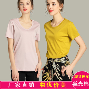 재고 15 컬러 양면 머서라이즈드 코튼 티셔츠 여성용 반팔 화이트 티셔츠 여성용 여름 루즈한 버전 브이넥 단색 티셔츠스토어 가기