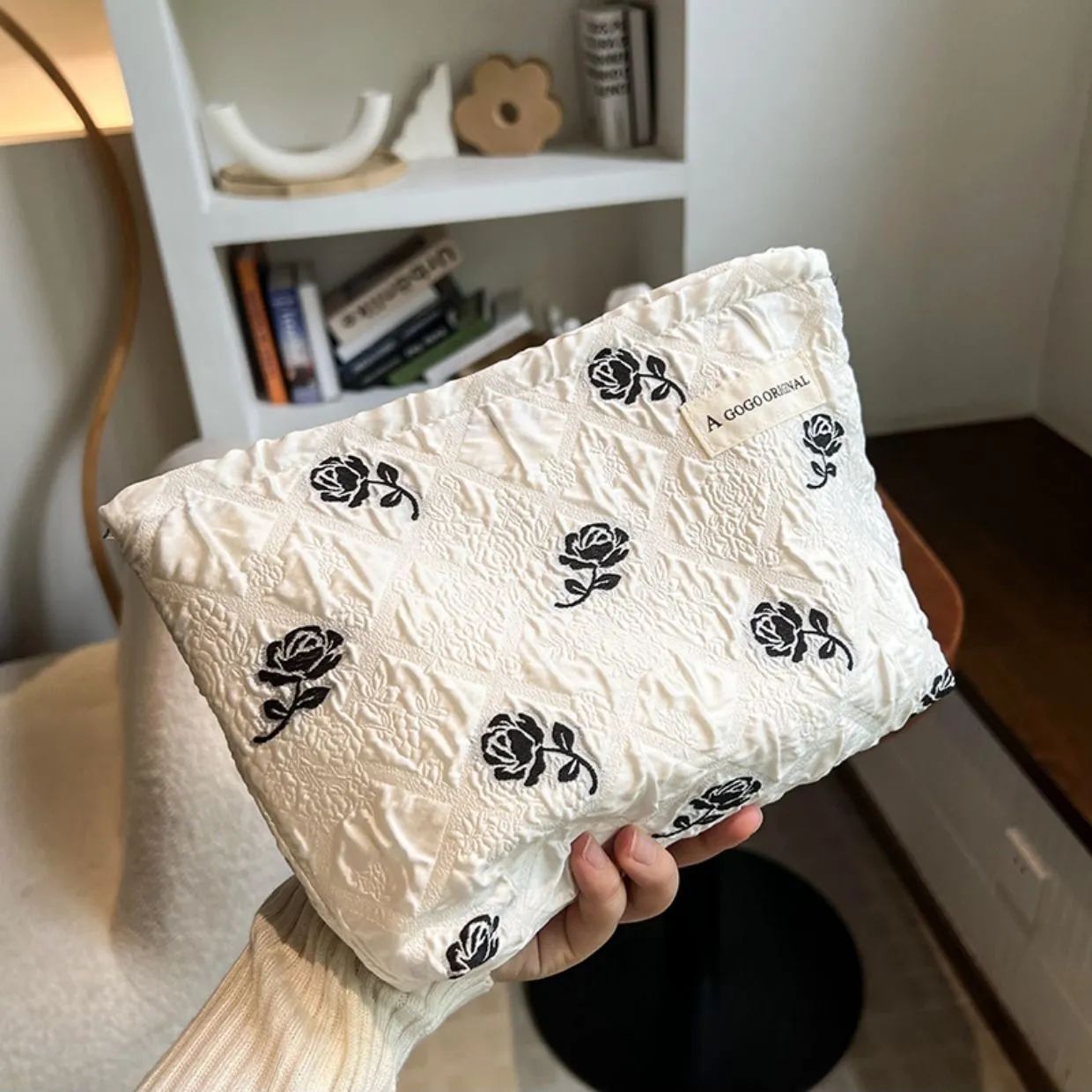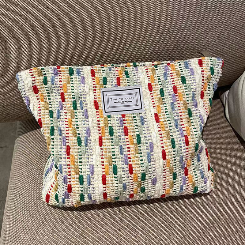 틈새 우아한 자카드 나일론 화장품 가방 예술적인 복고풍 간단한 우아한 꽃 편리한 핸드백 크로스 보더 격자 무늬 가방