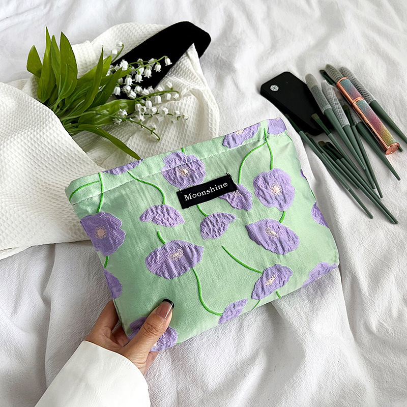 틈새 우아한 자카드 나일론 화장품 가방 예술적인 복고풍 간단한 우아한 꽃 편리한 핸드백 크로스 보더 격자 무늬 가방스토어 가기