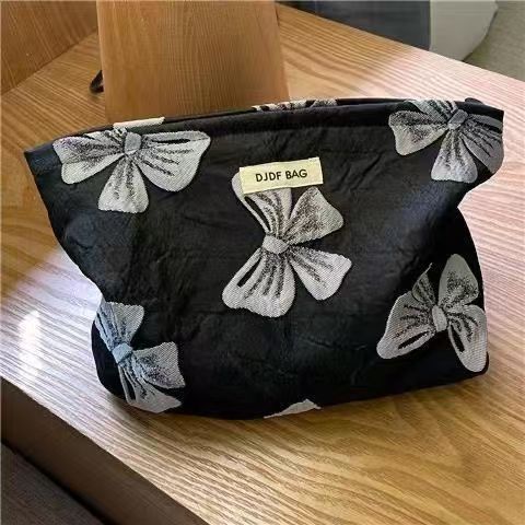 • 검은색 바탕에 회색 리본이 달린 화장품 가방