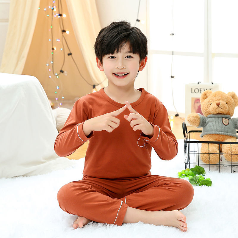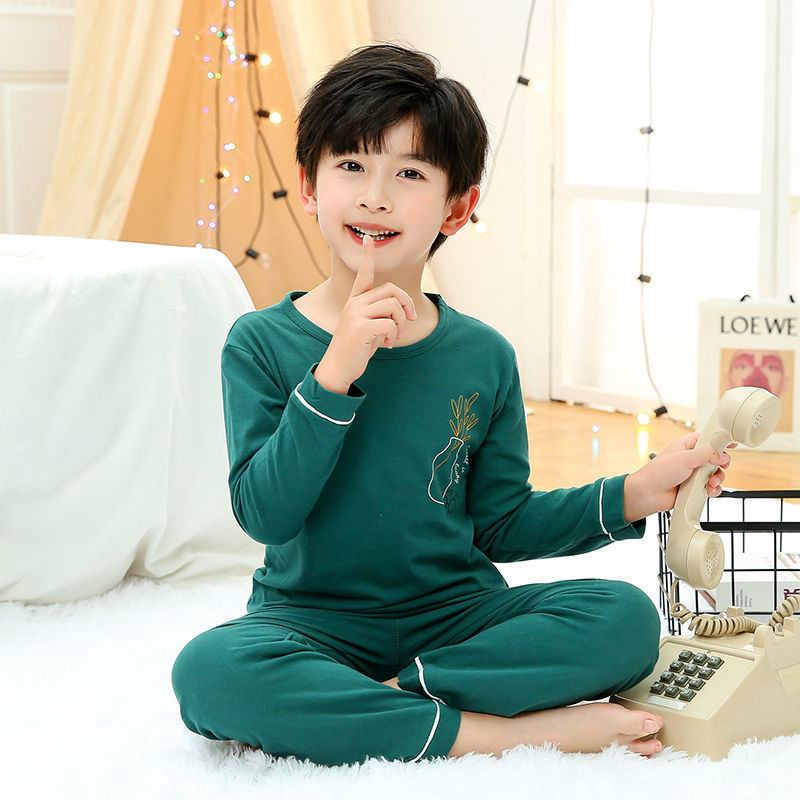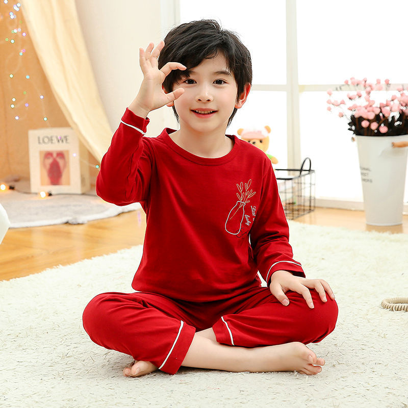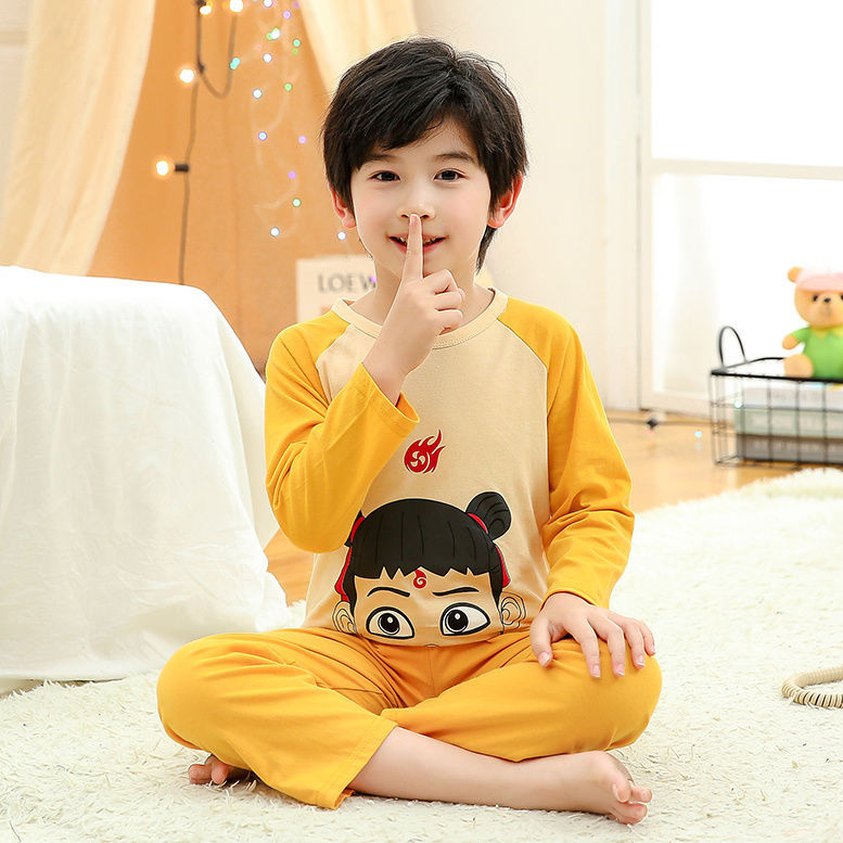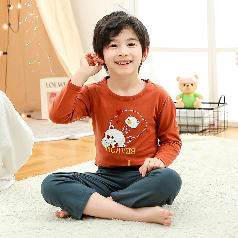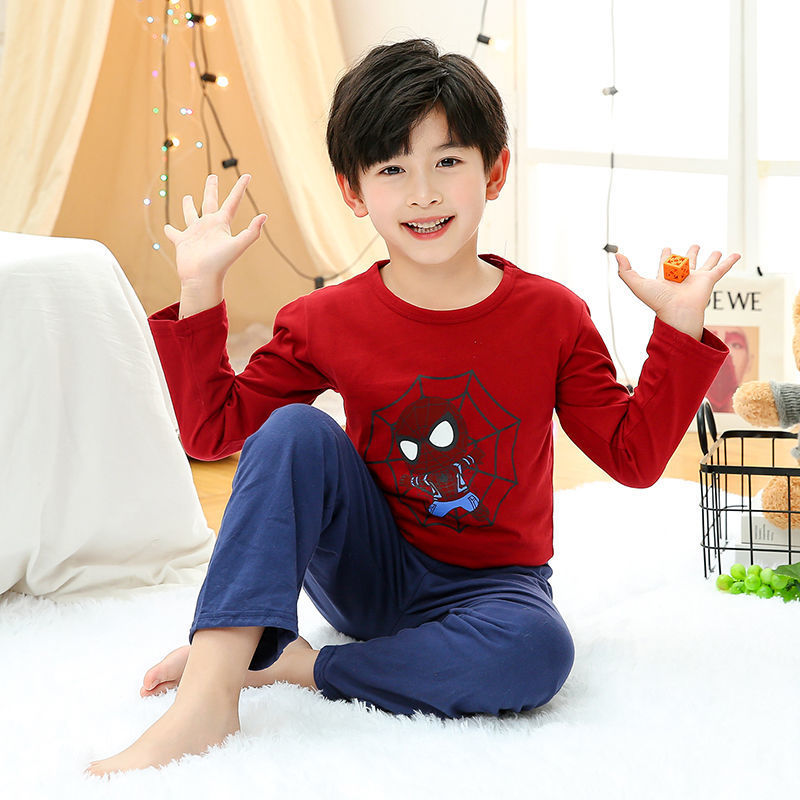 소년 여름 얇은 순면 잠옷 소년과 어린이를위한 봄과 가을 긴 소매 바지 여름 가정 의류 세트