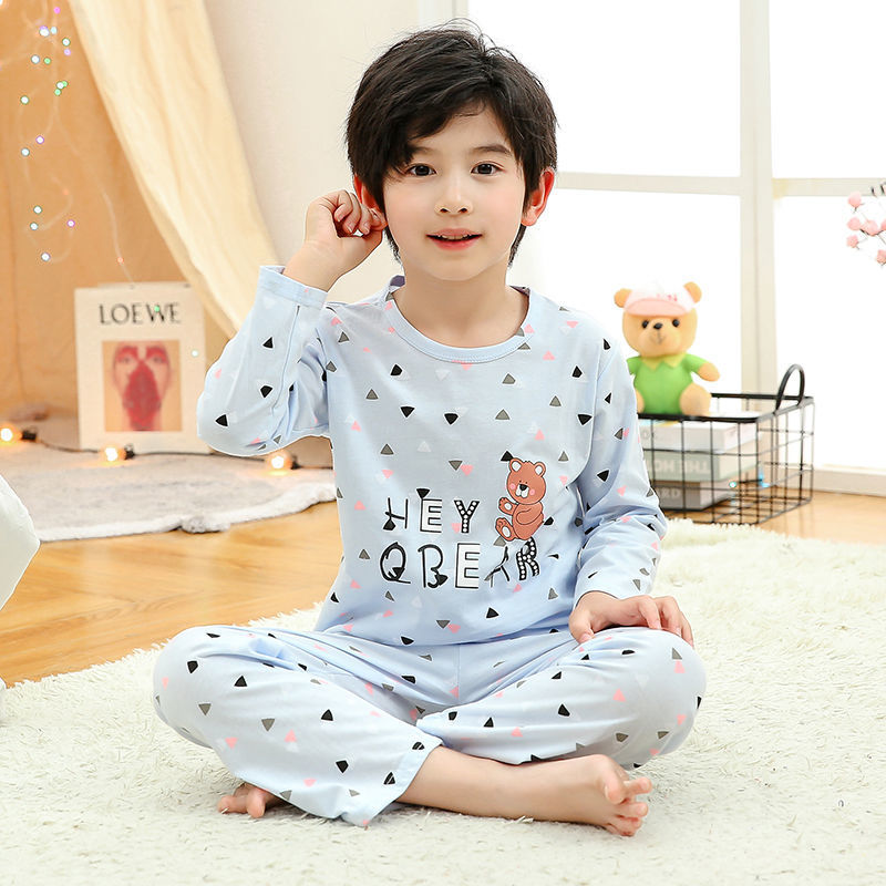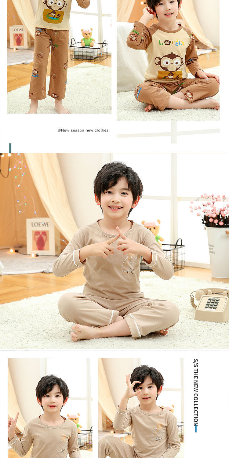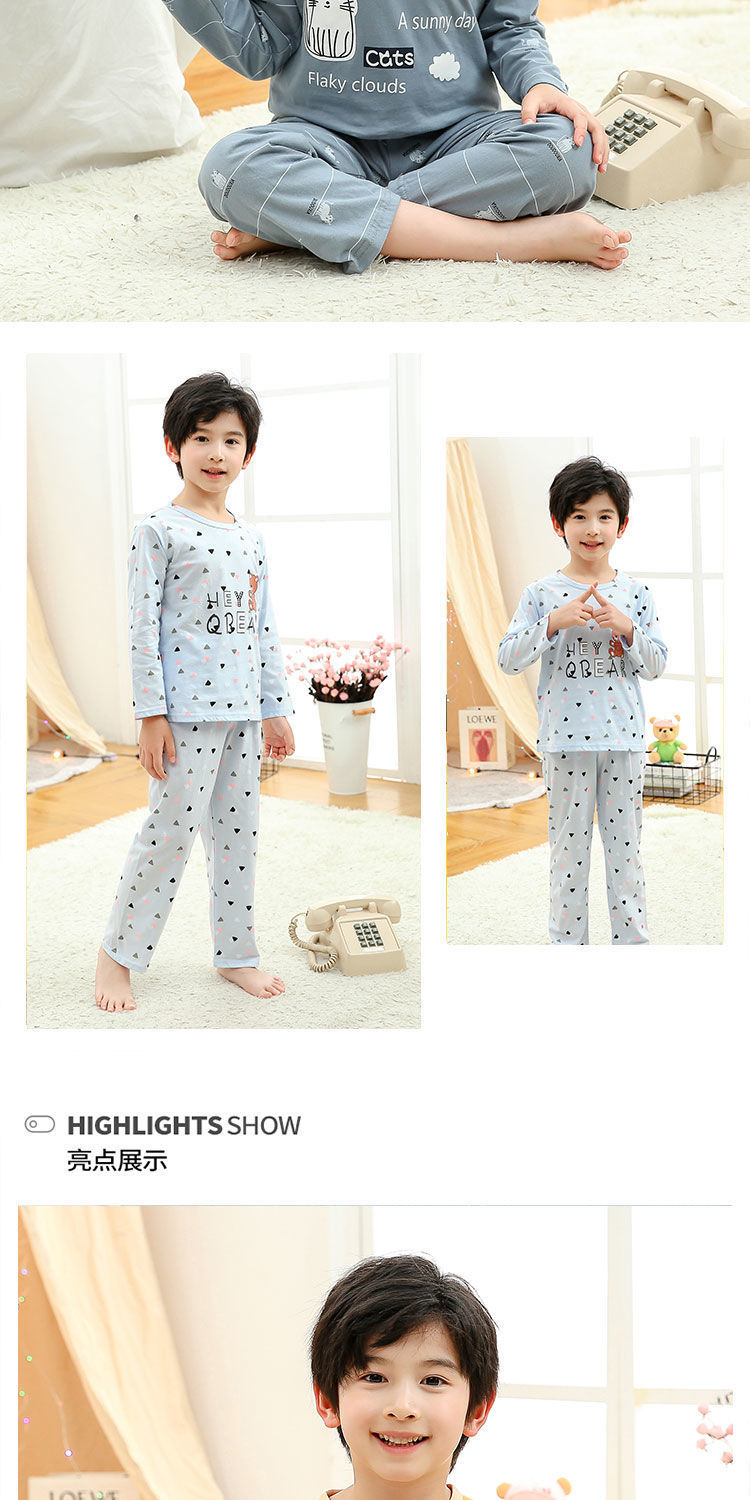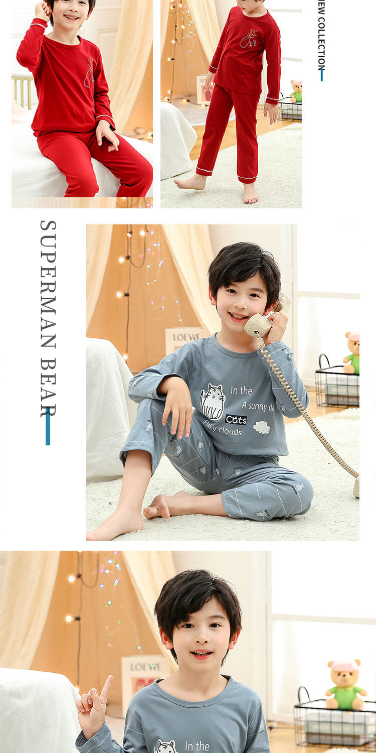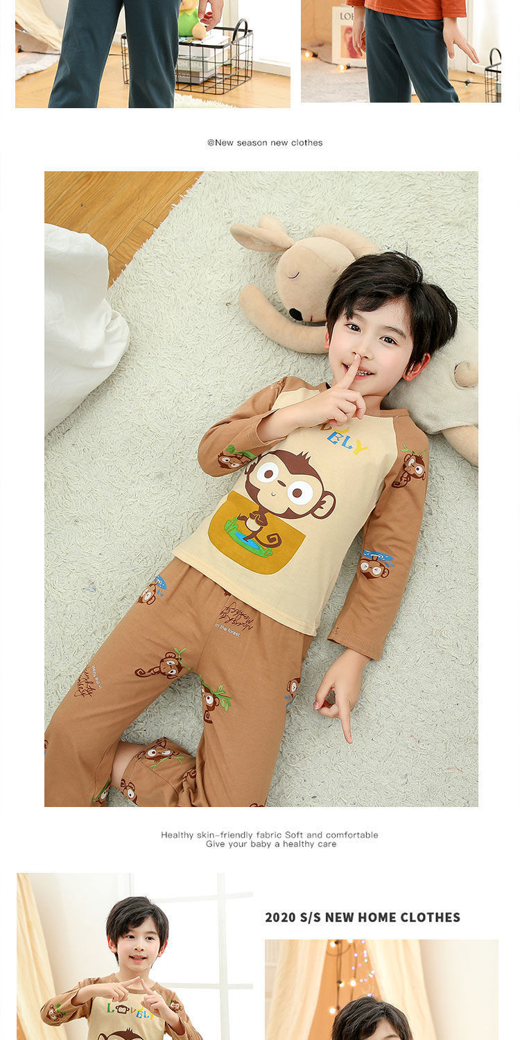 소년 여름 얇은 순면 잠옷 소년과 어린이를위한 봄과 가을 긴 소매 바지 여름 가정 의류 세트스토어 가기