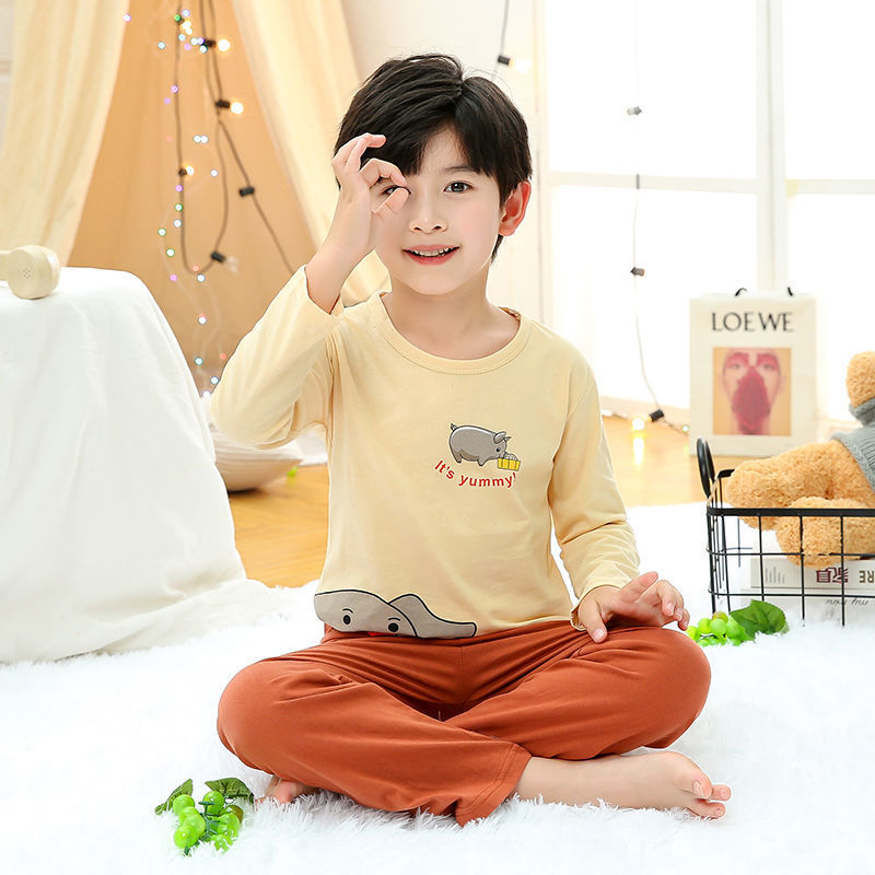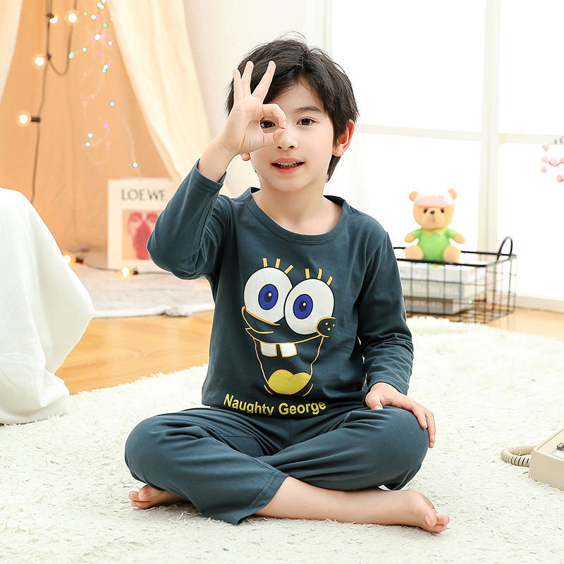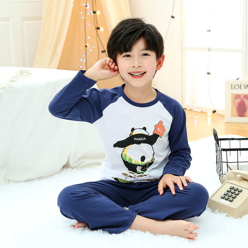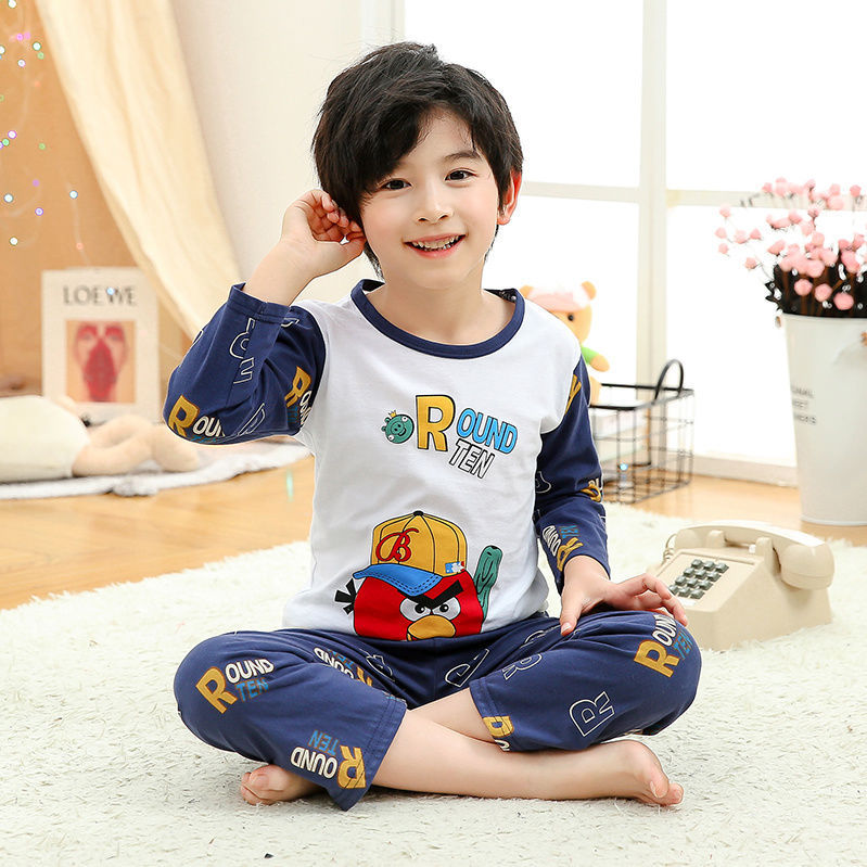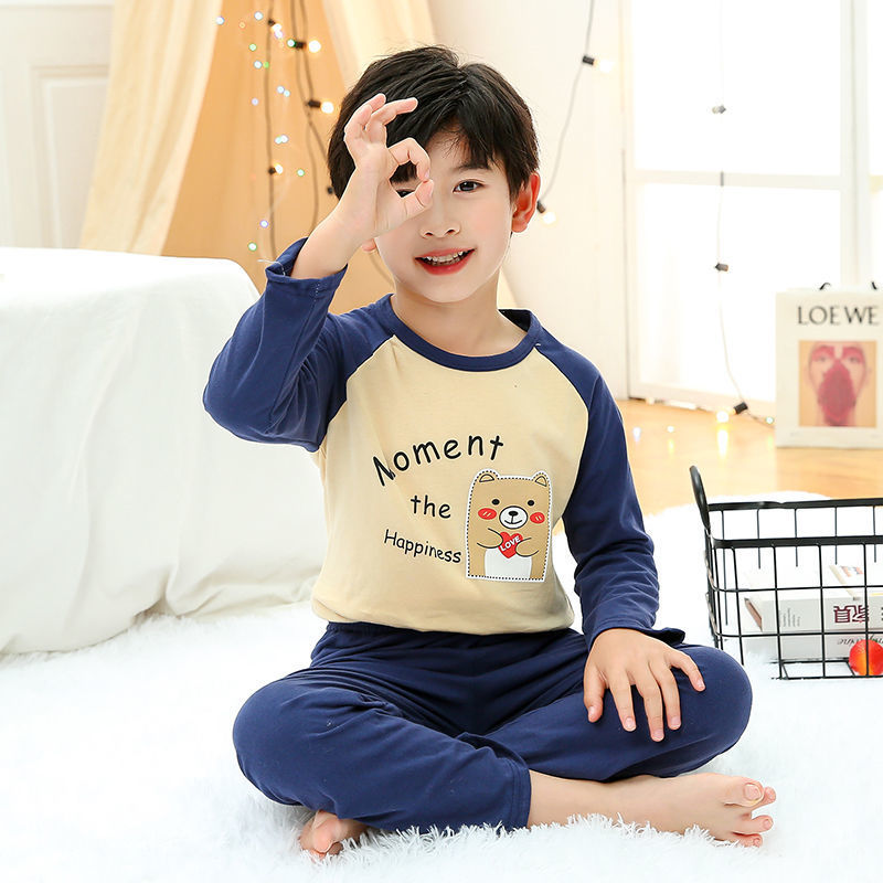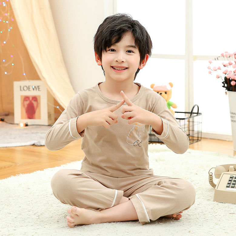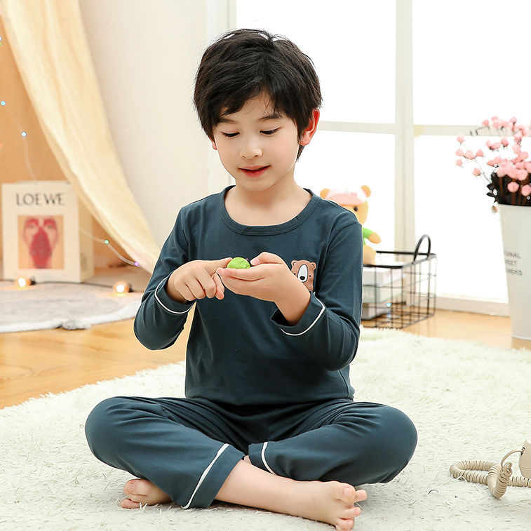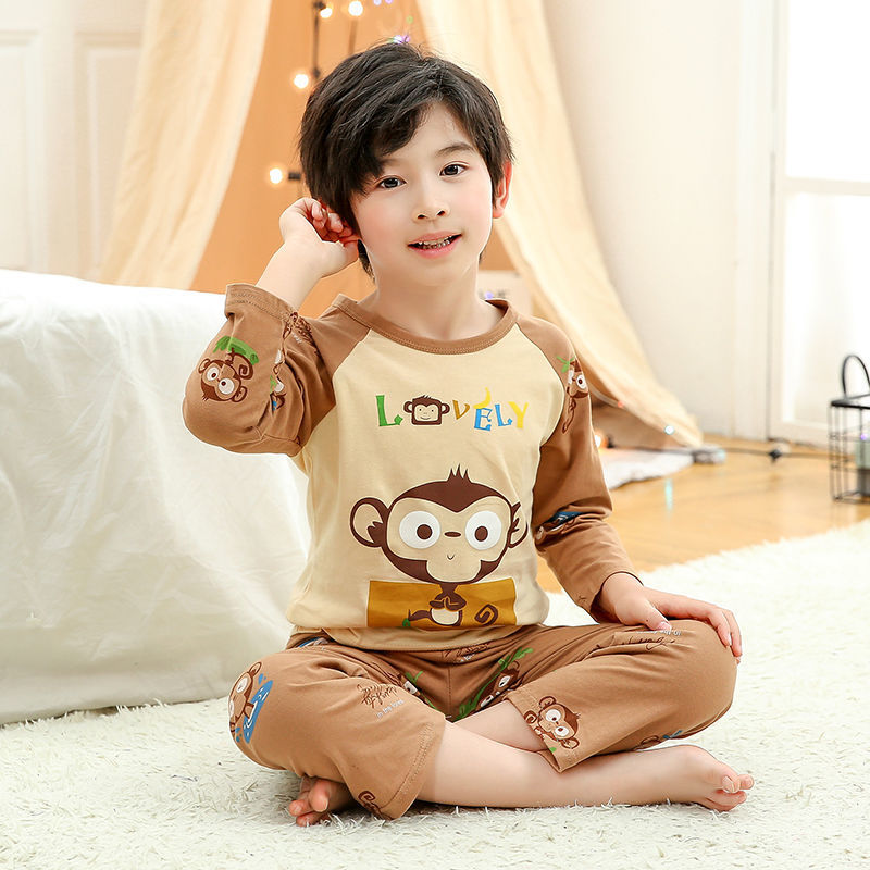 소년 여름 얇은 순면 잠옷 소년과 어린이를위한 봄과 가을 긴 소매 바지 여름 가정 의류 세트스토어 가기