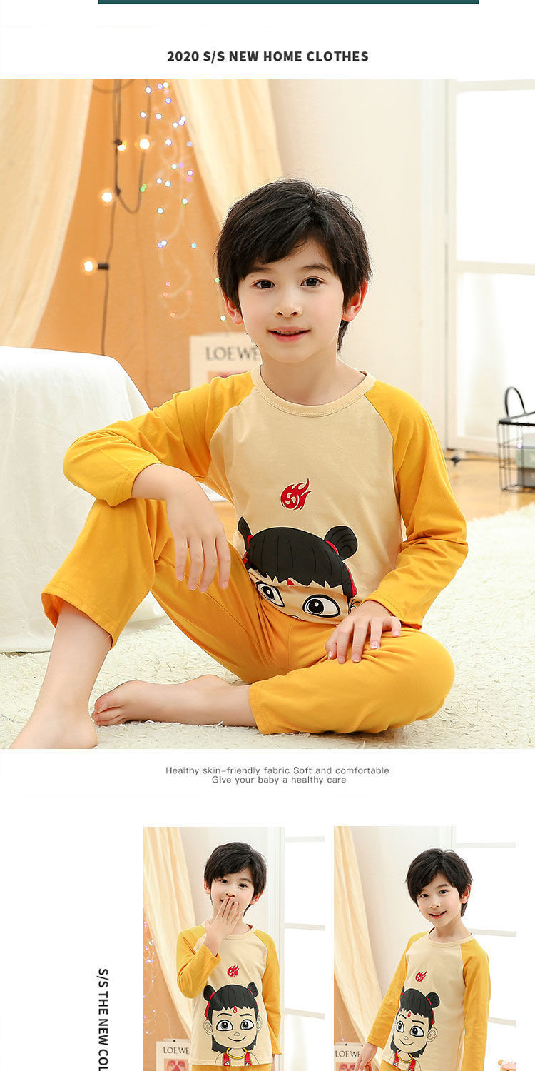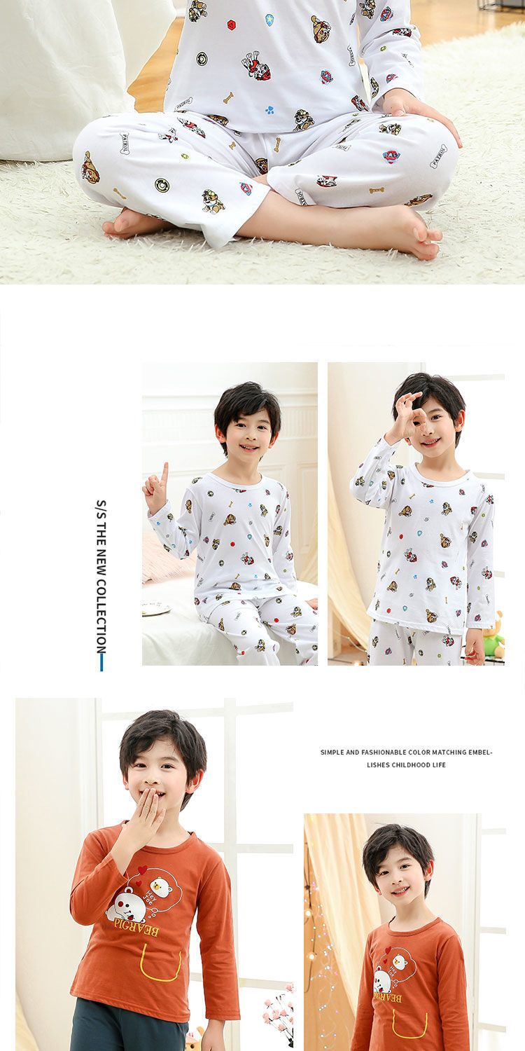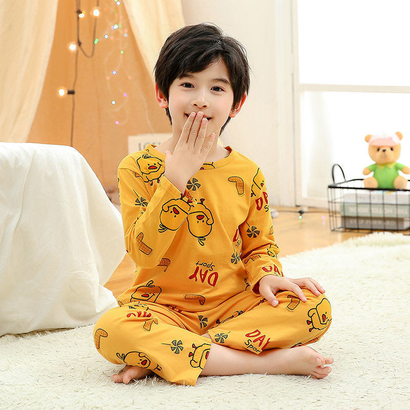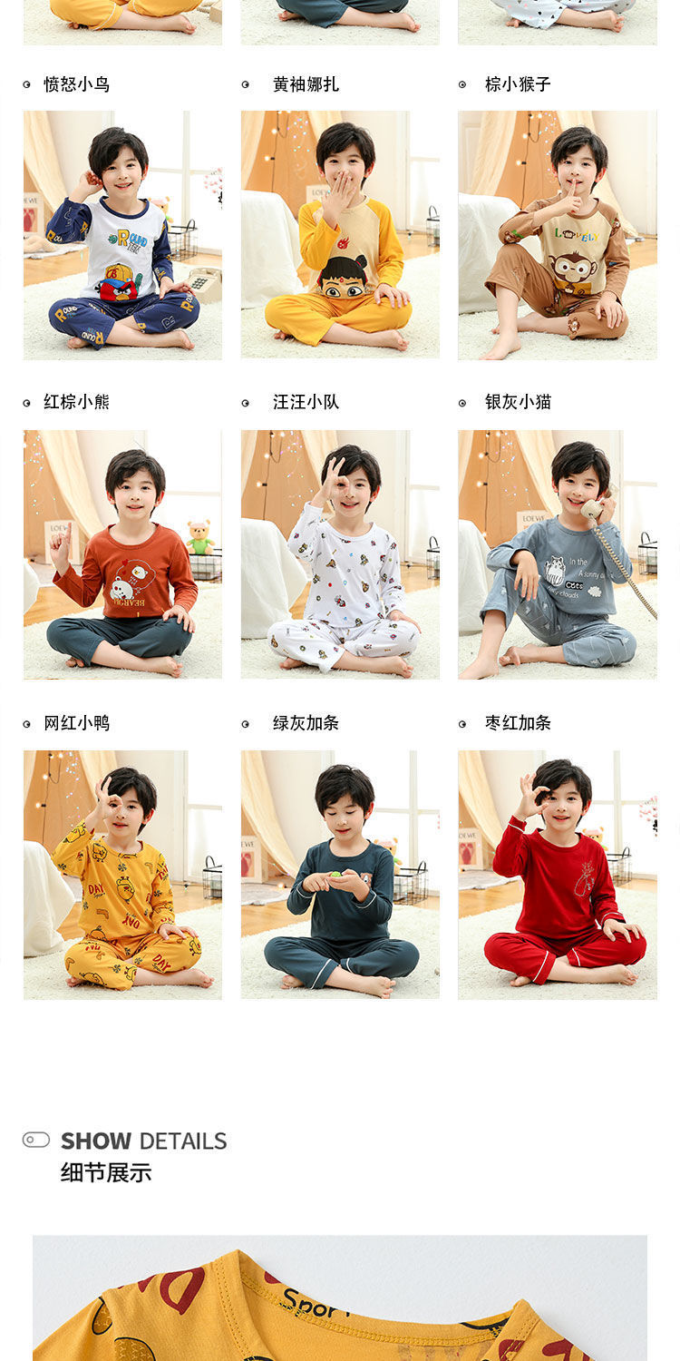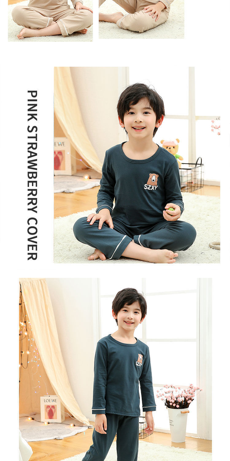 소년 여름 얇은 순면 잠옷 소년과 어린이를위한 봄과 가을 긴 소매 바지 여름 가정 의류 세트스토어 가기