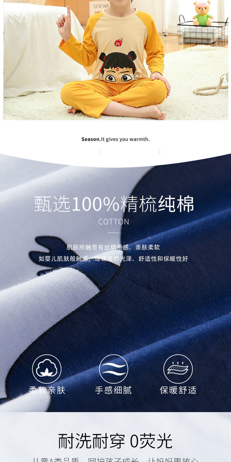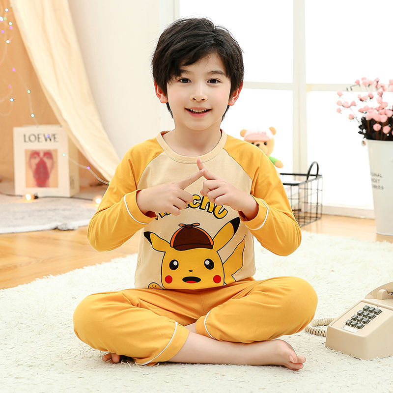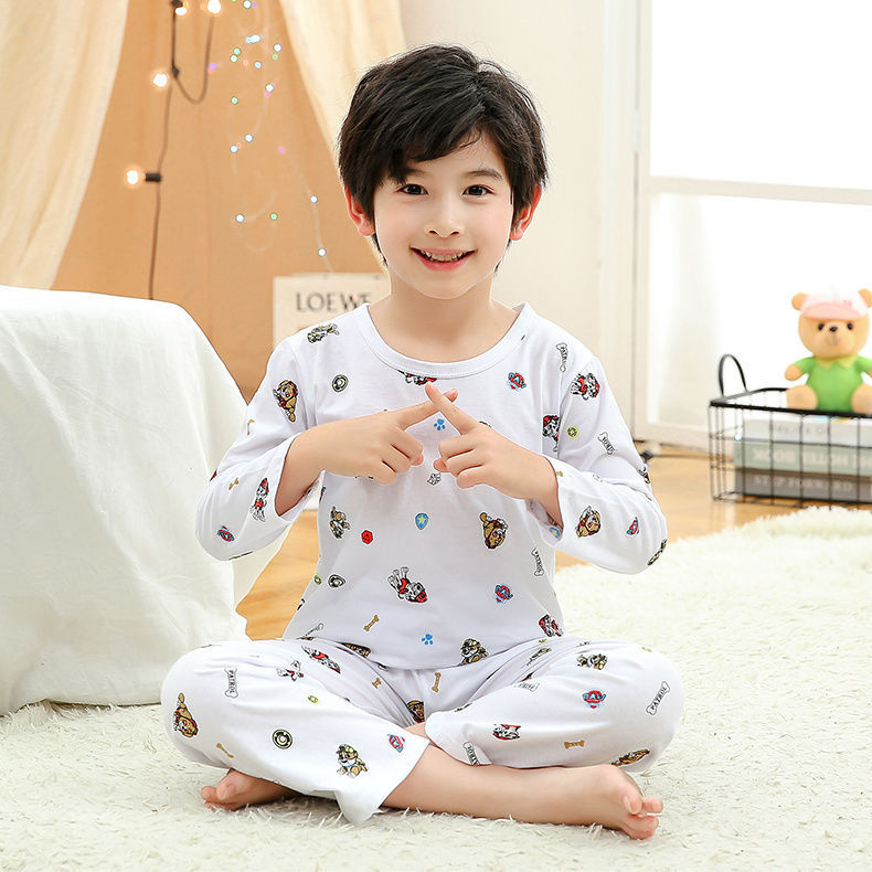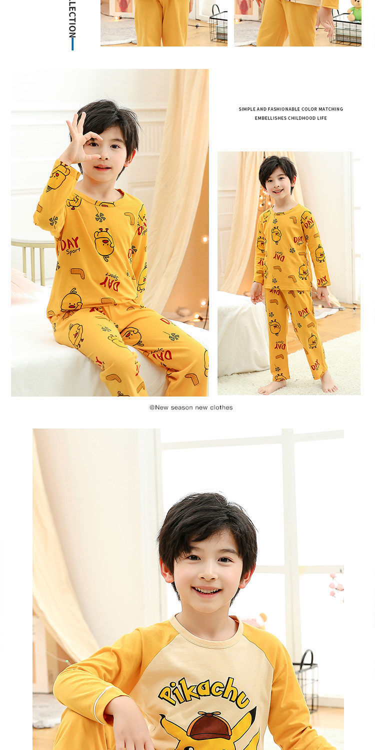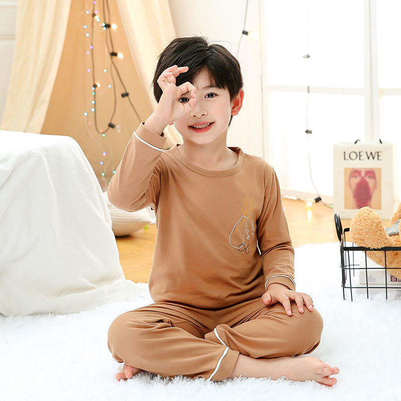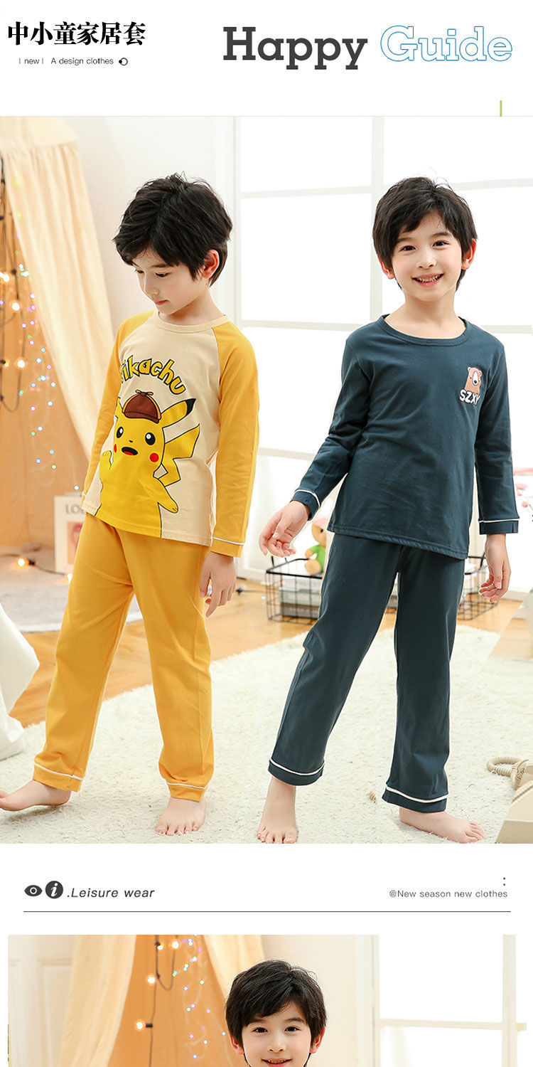 소년 여름 얇은 순면 잠옷 소년과 어린이를위한 봄과 가을 긴 소매 바지 여름 가정 의류 세트스토어 가기
