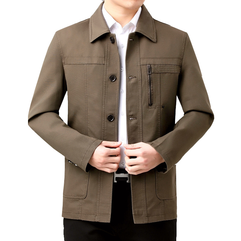 봄, 가을 중년 및 노인 재킷 남성 느슨한 중간 길이 워시 코튼 재킷 캐주얼 재킷 아빠 착용
