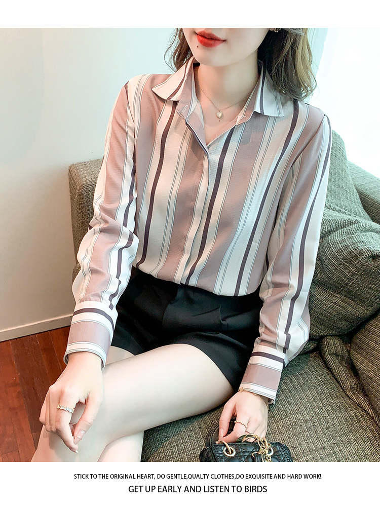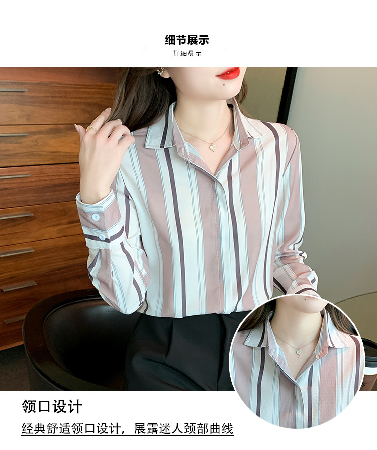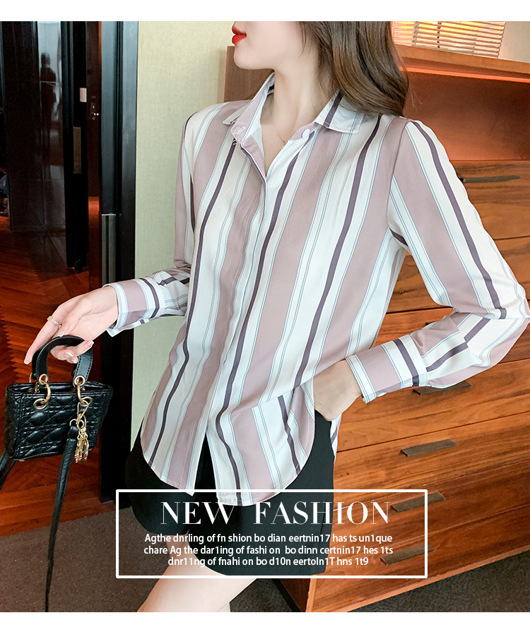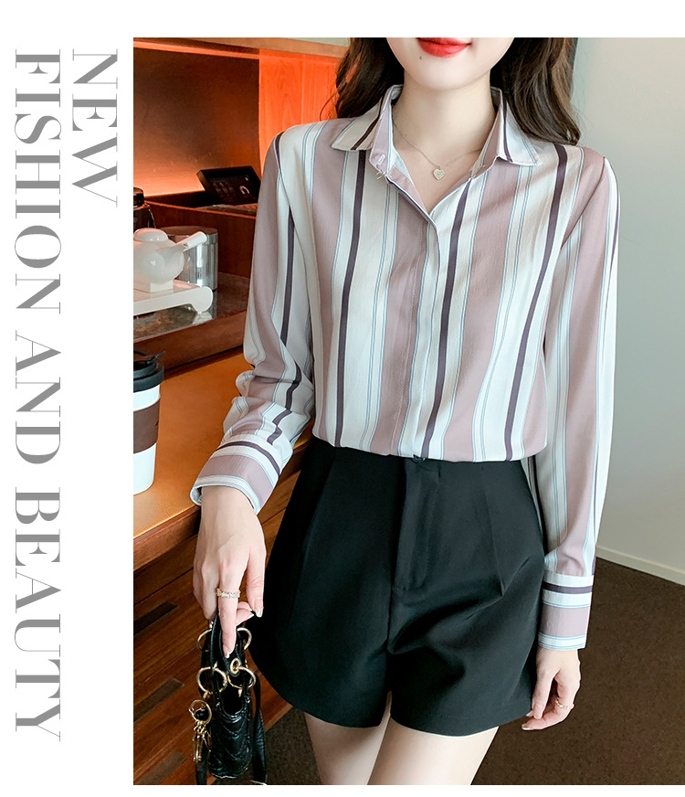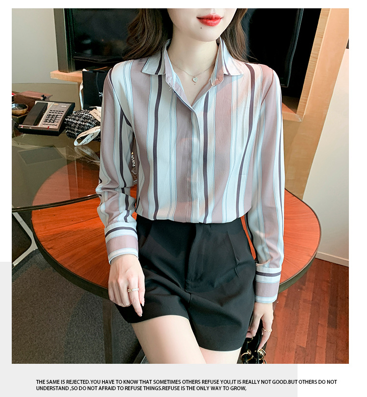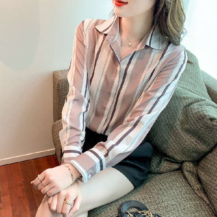 스트라이프 셔츠 여성의 디자인 센스 2023 봄 한국 스타일 쉬폰 셔츠 레트로 슬리밍 긴 소매 탑 루즈한 셔츠스토어 가기