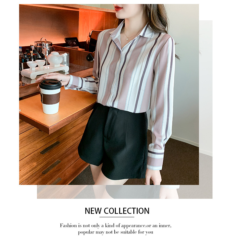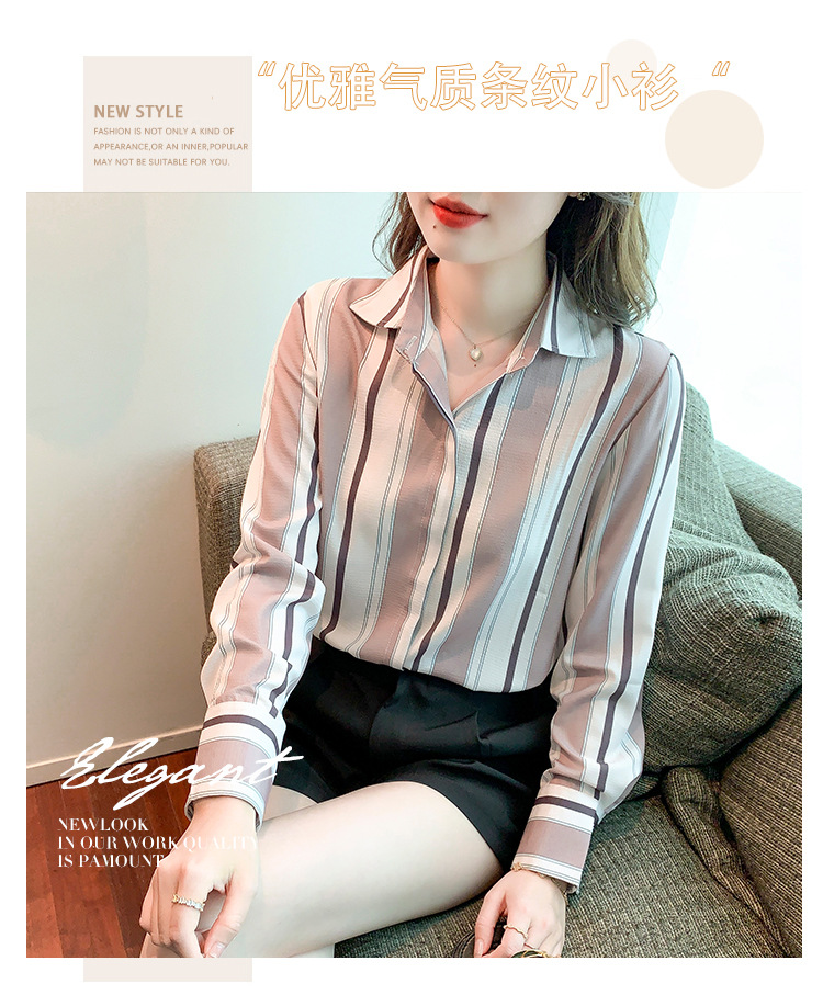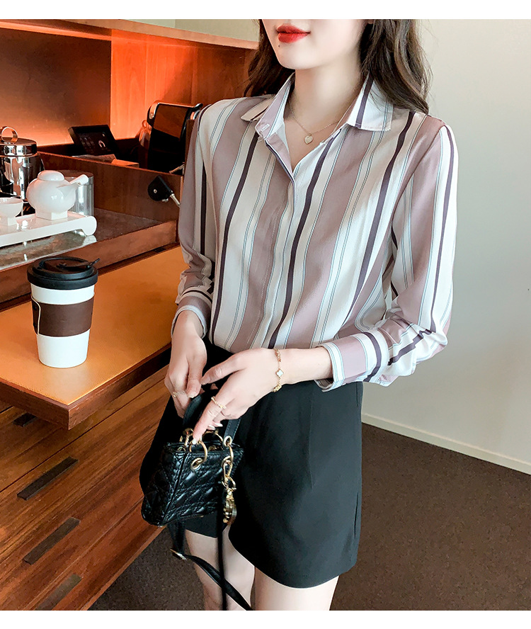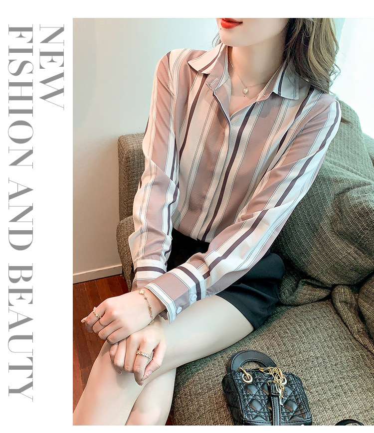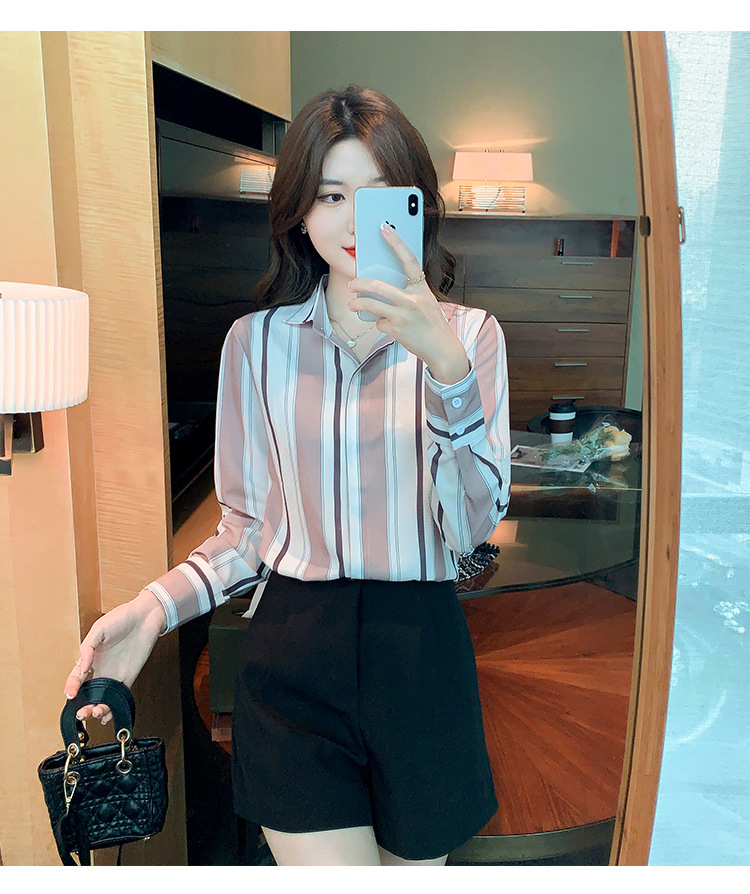 스트라이프 셔츠 여성의 디자인 센스 2023 봄 한국 스타일 쉬폰 셔츠 레트로 슬리밍 긴 소매 탑 루즈한 셔츠스토어 가기