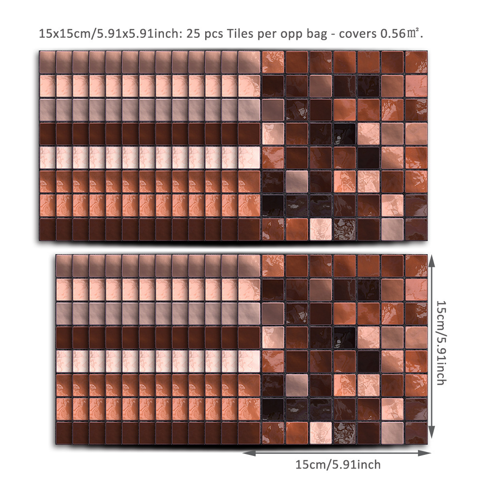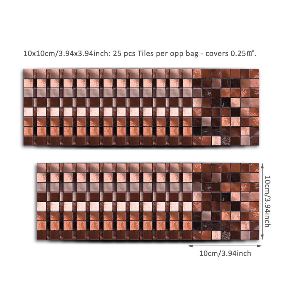 Funlife 거실 장식 벽 스티커 다크 브라운 모자이크 타일 스티커 25 조각 홈 장식 리노베이션 SJ005