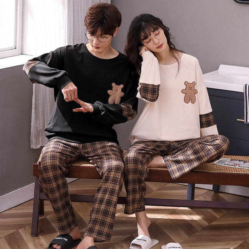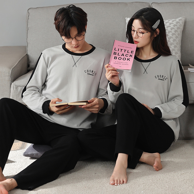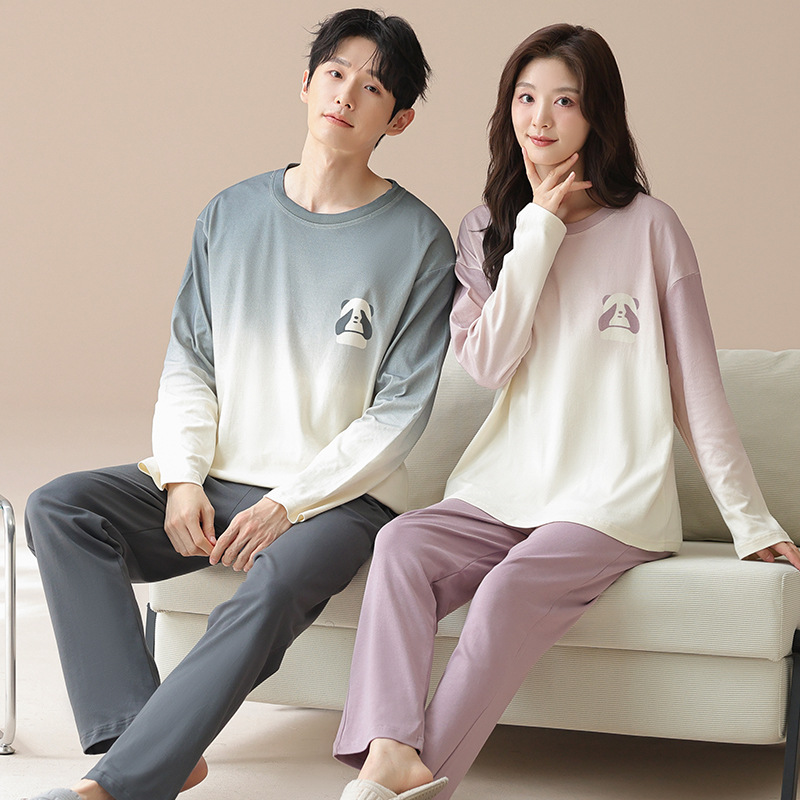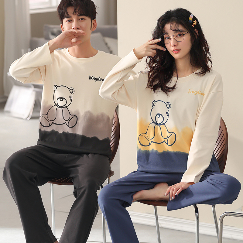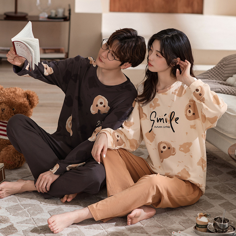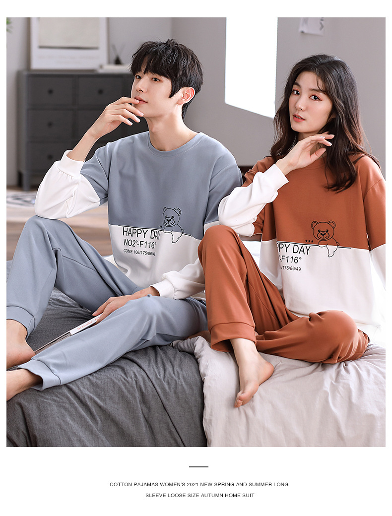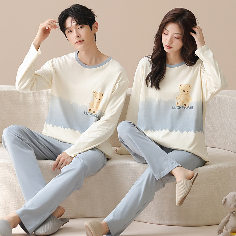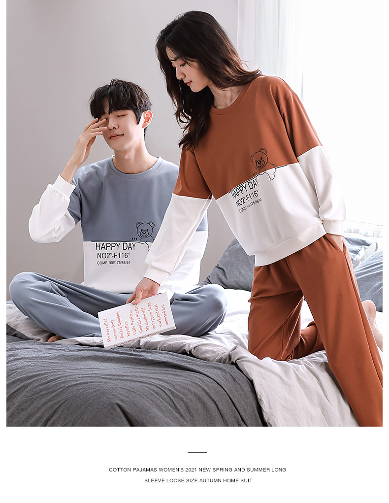 2024년 신상 커플 잠옷 봄 가을 순면 풀오버 남성 여성 홈웨어 세트 순면 외출복 가능스토어 가기
