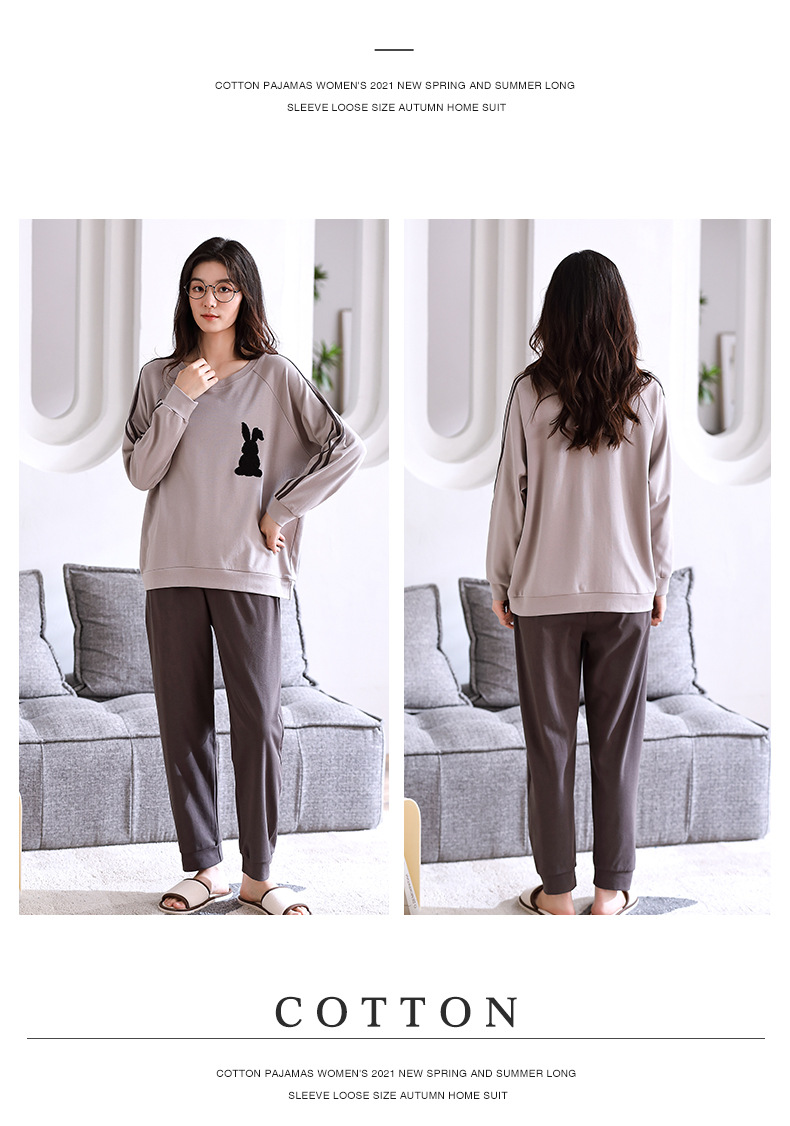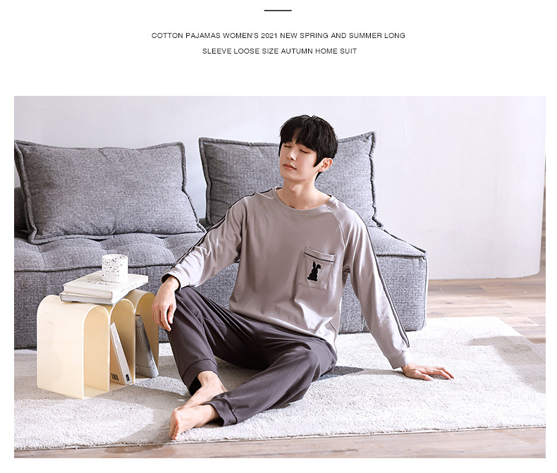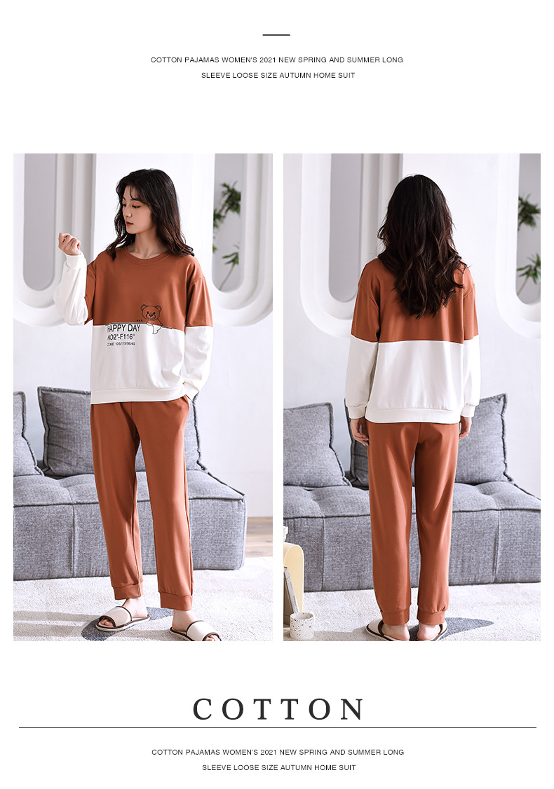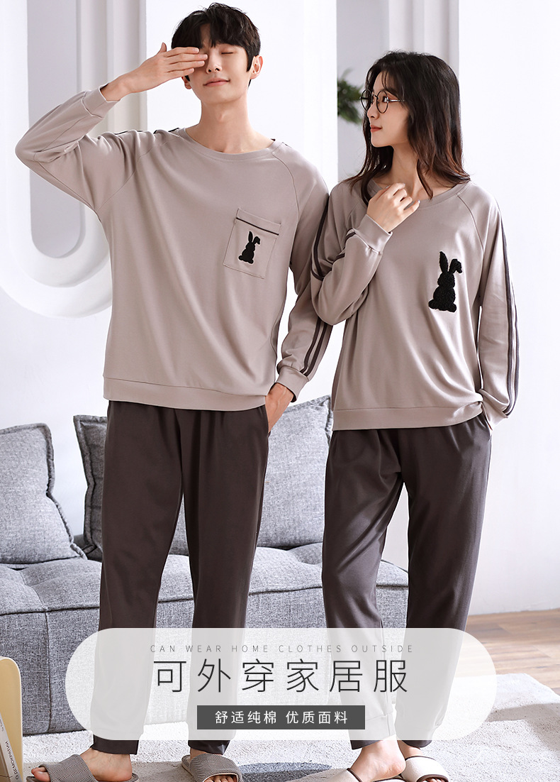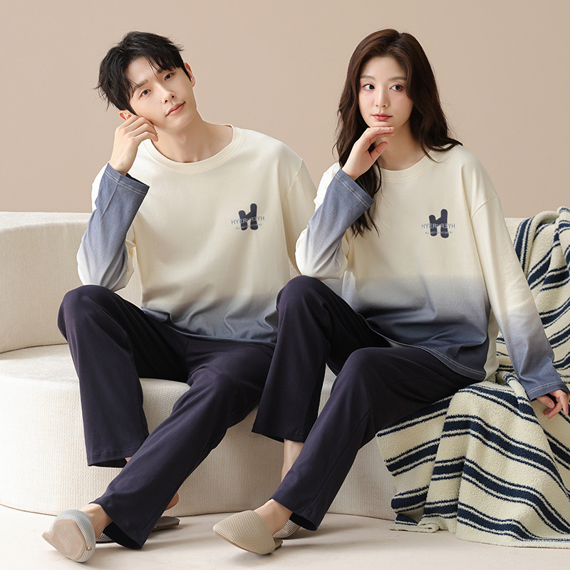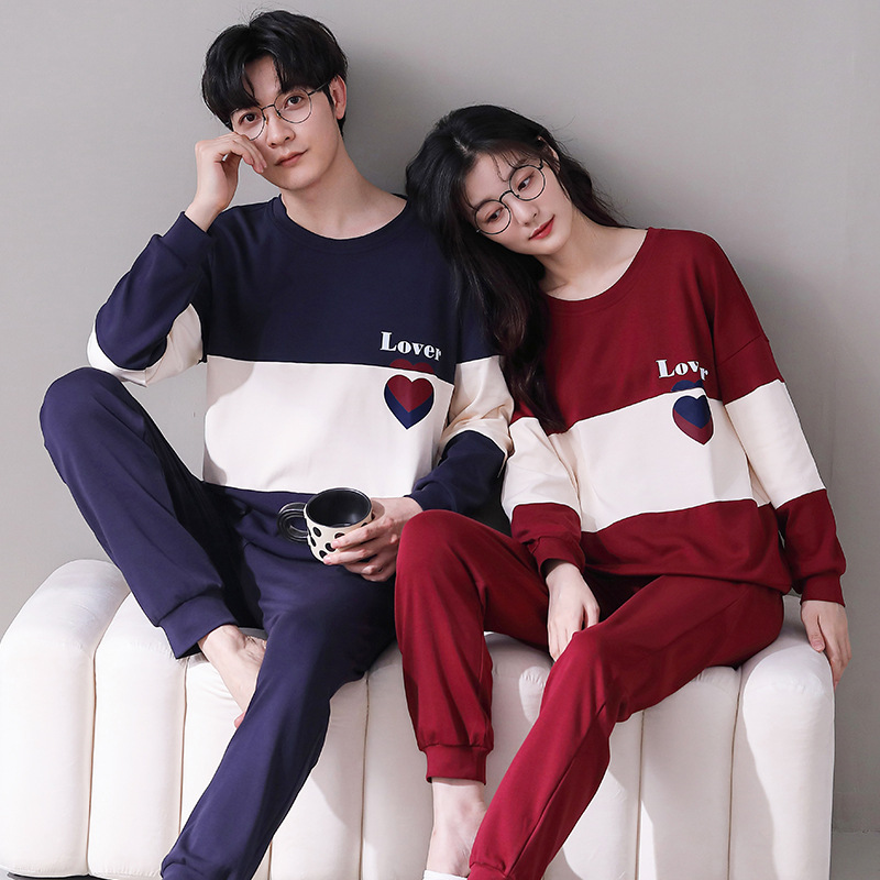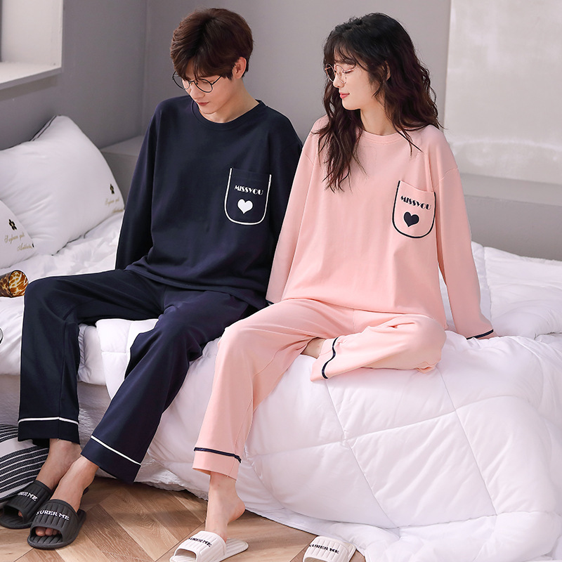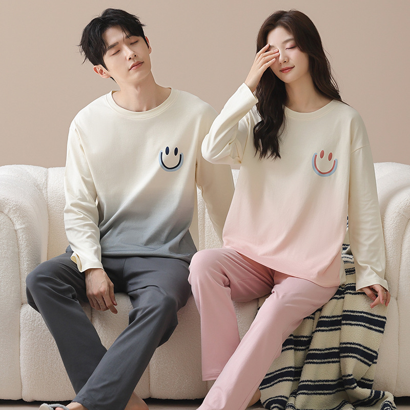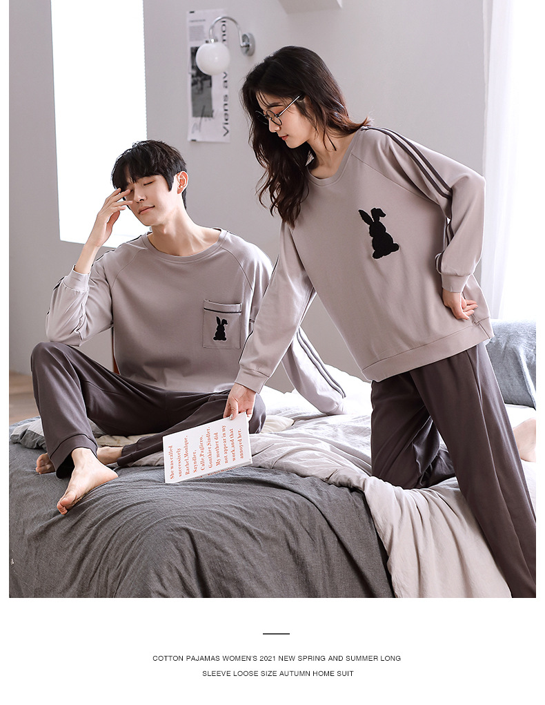 2024년 신상 커플 잠옷 봄 가을 순면 풀오버 남성 여성 홈웨어 세트 순면 외출복 가능스토어 가기