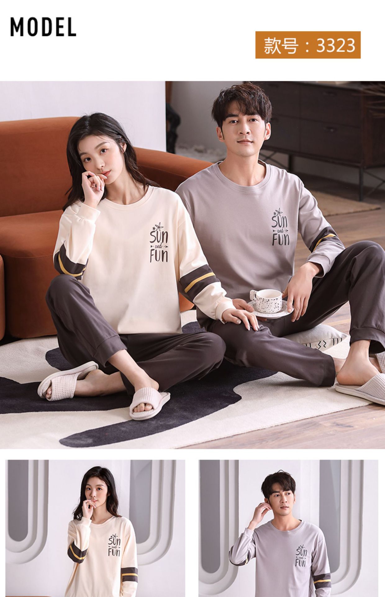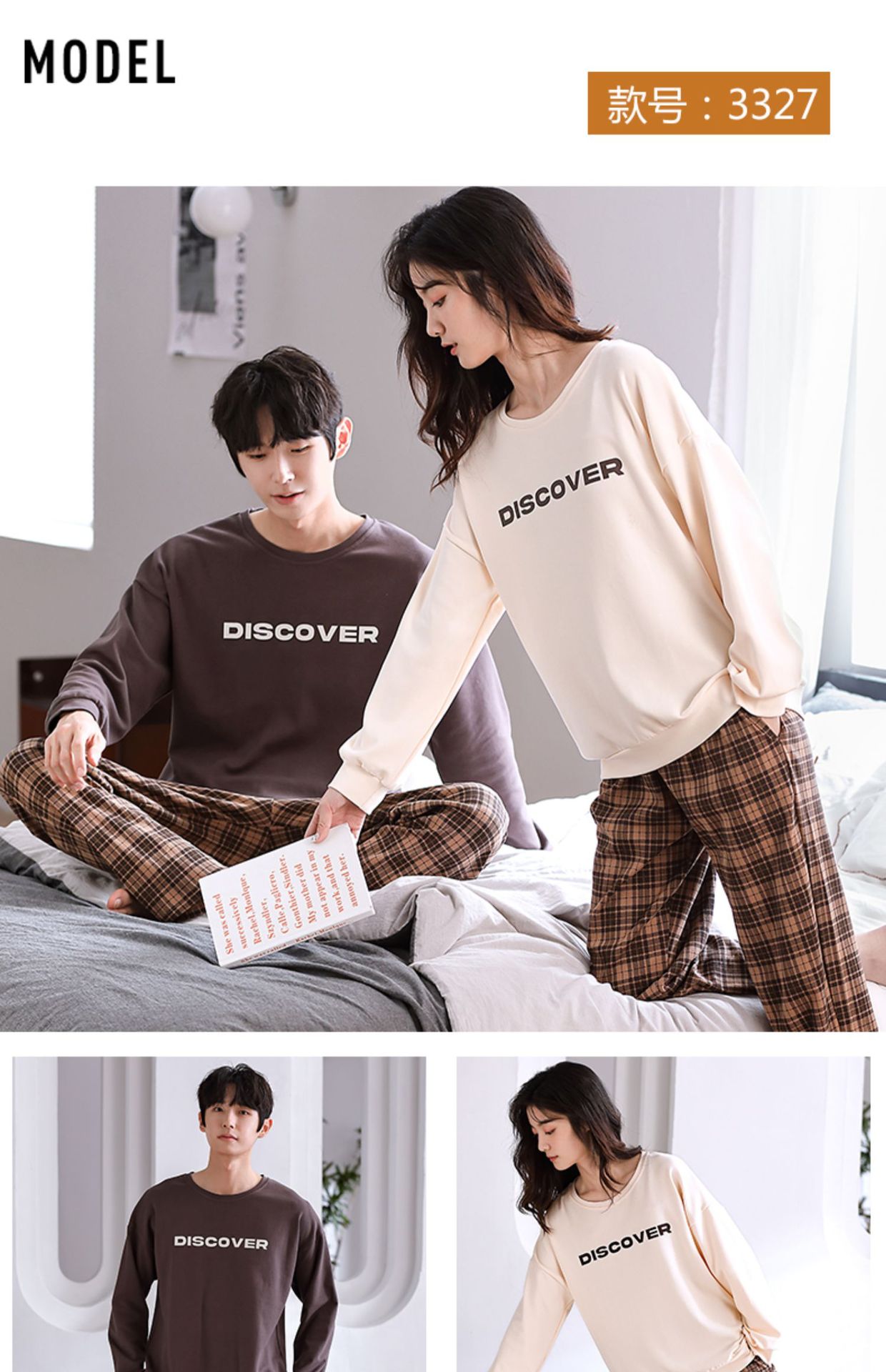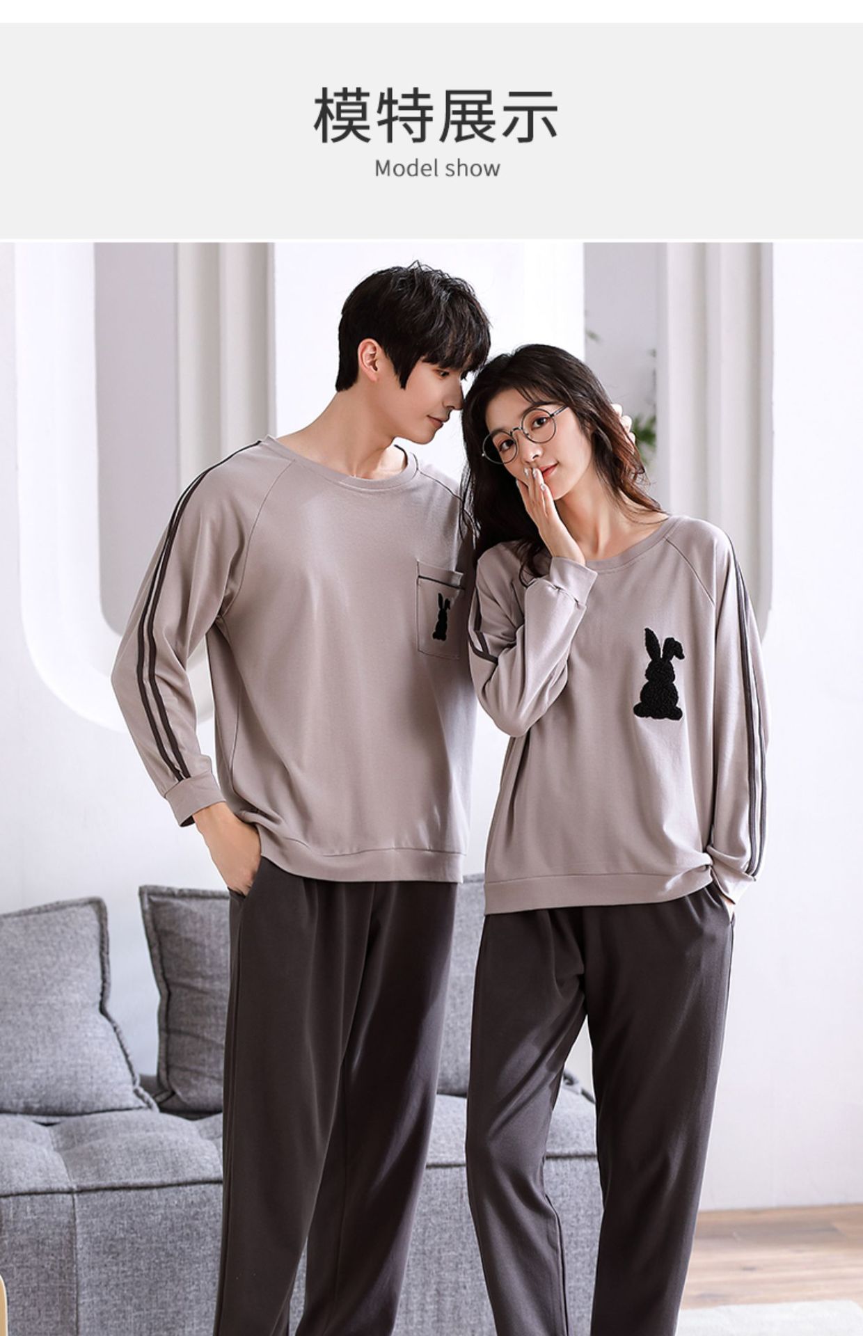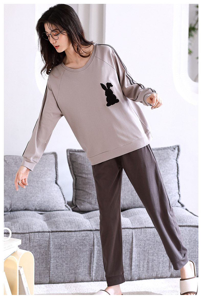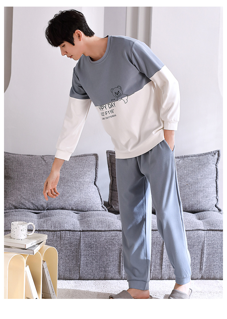 2024년 신상 커플 잠옷 봄 가을 순면 풀오버 남성 여성 홈웨어 세트 순면 외출복 가능스토어 가기