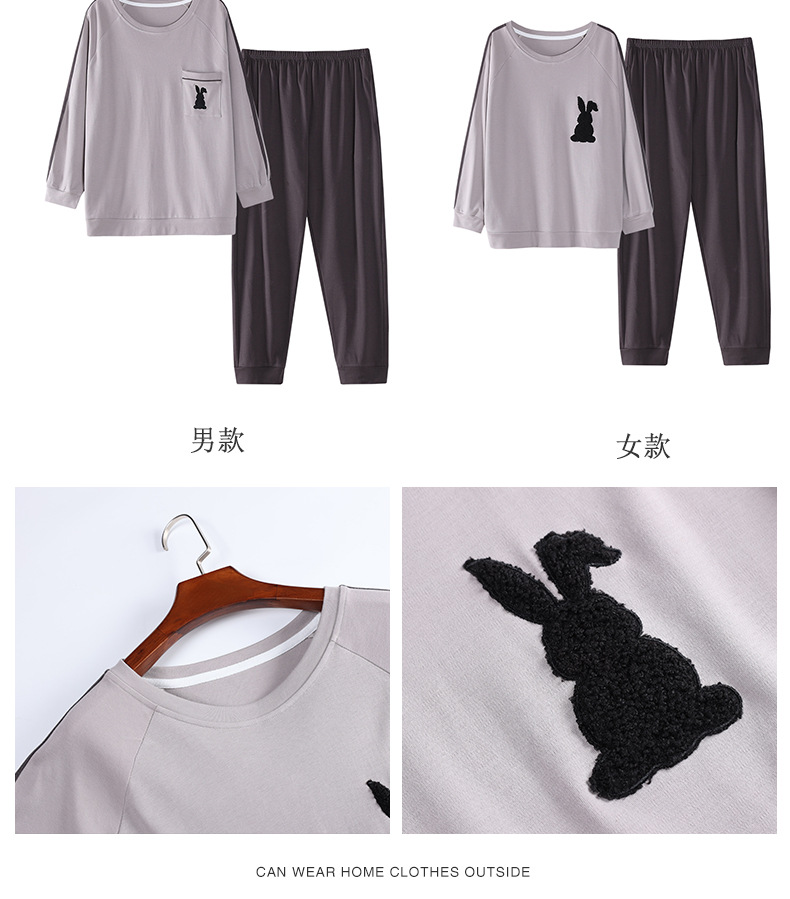 2024년 신상 커플 잠옷 봄 가을 순면 풀오버 남성 여성 홈웨어 세트 순면 외출복 가능