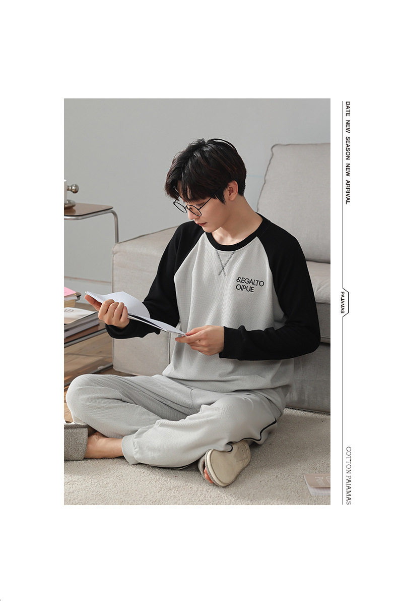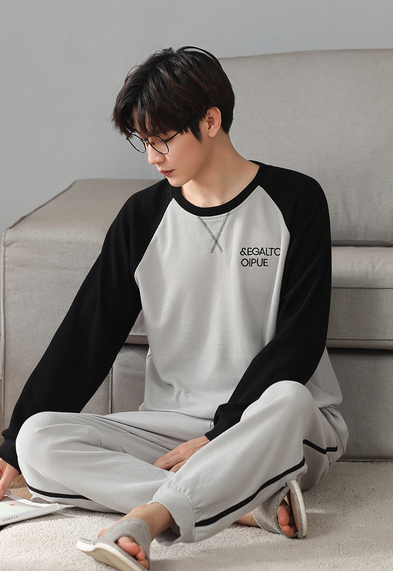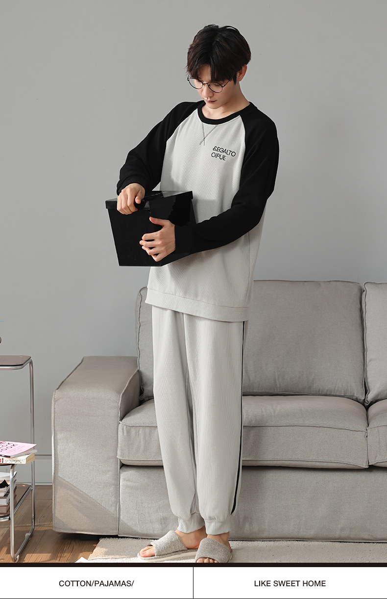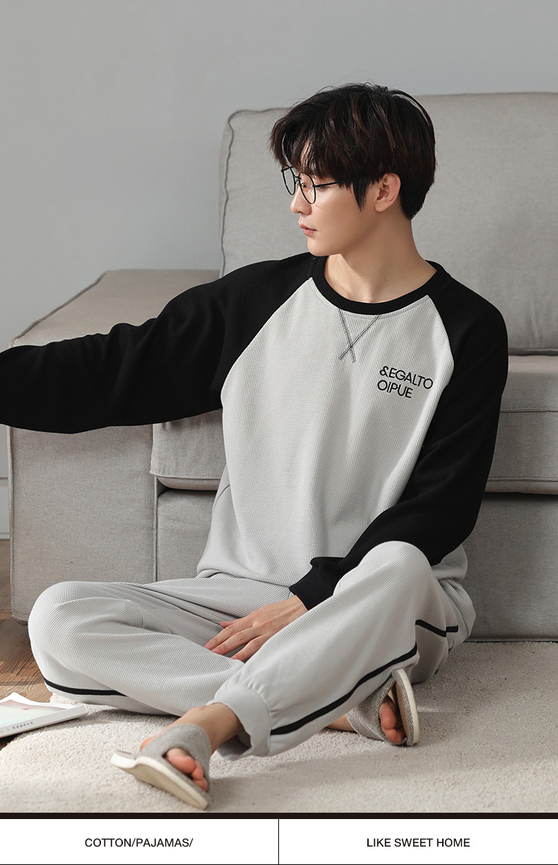 아이 펜톤 잠옷 남자의 봄과 가을 면 긴 소매 새로운 청소년 캐주얼 면 플러스 사이즈 가정 옷 세트스토어 가기