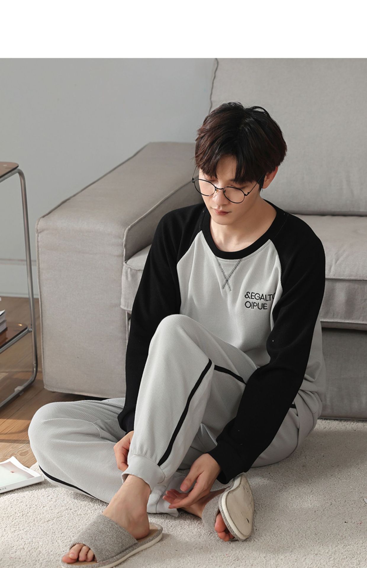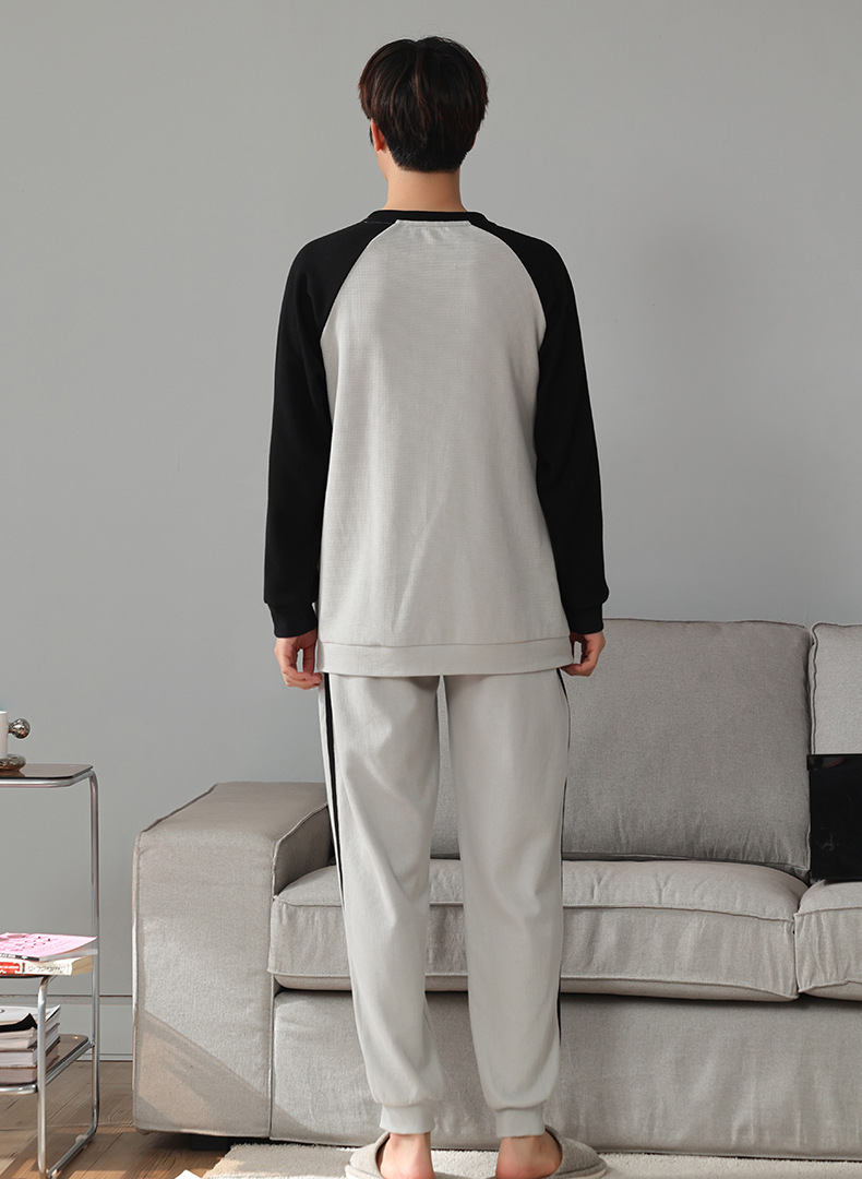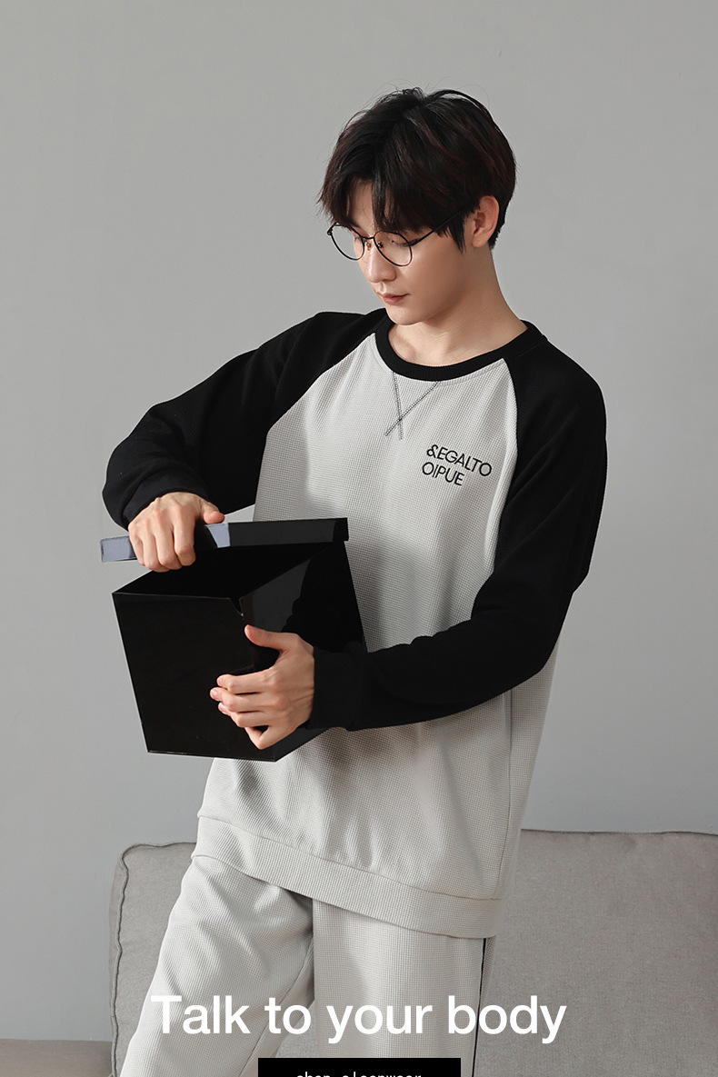 아이 펜톤 잠옷 남자의 봄과 가을 면 긴 소매 새로운 청소년 캐주얼 면 플러스 사이즈 가정 옷 세트스토어 가기