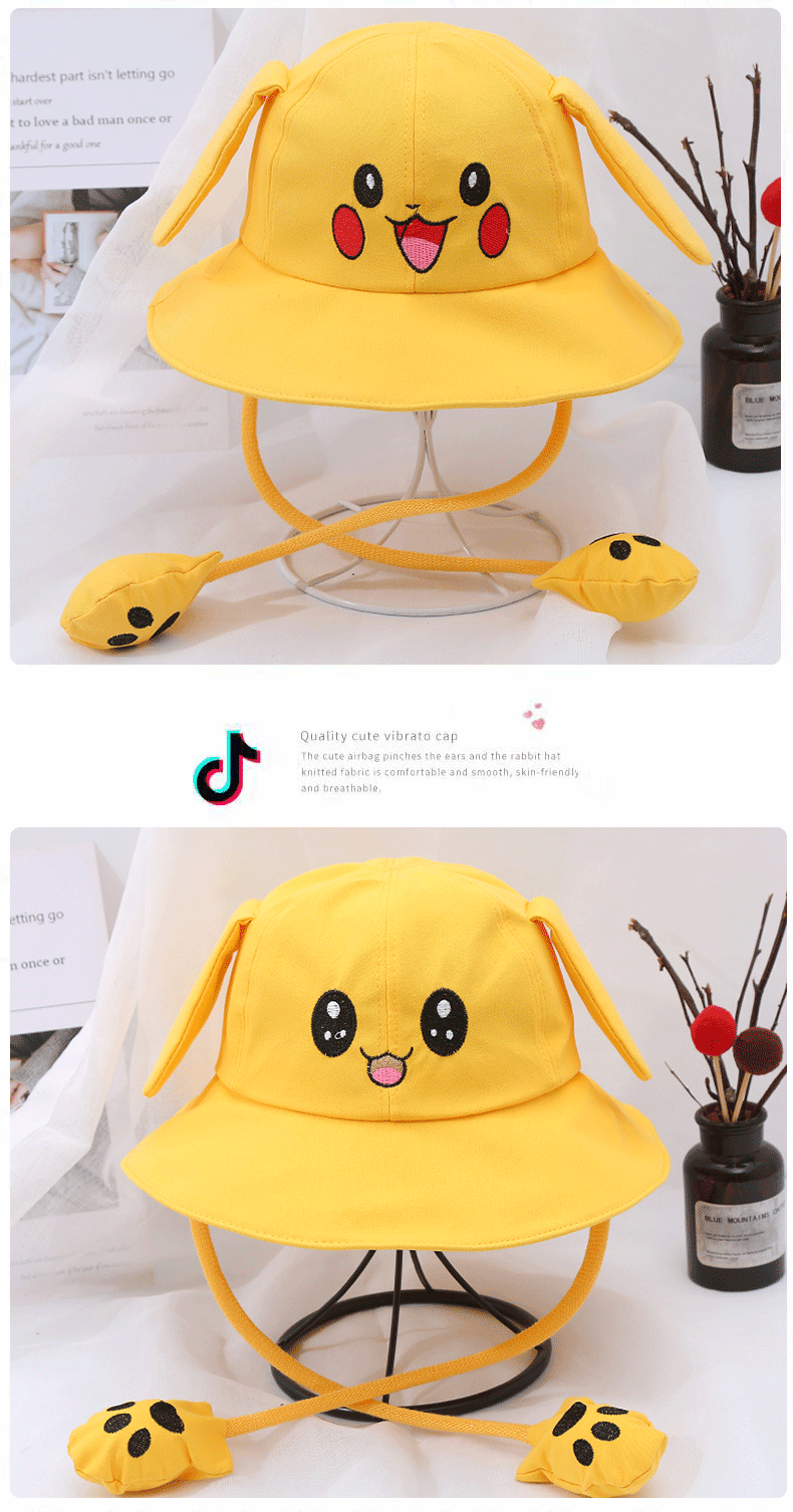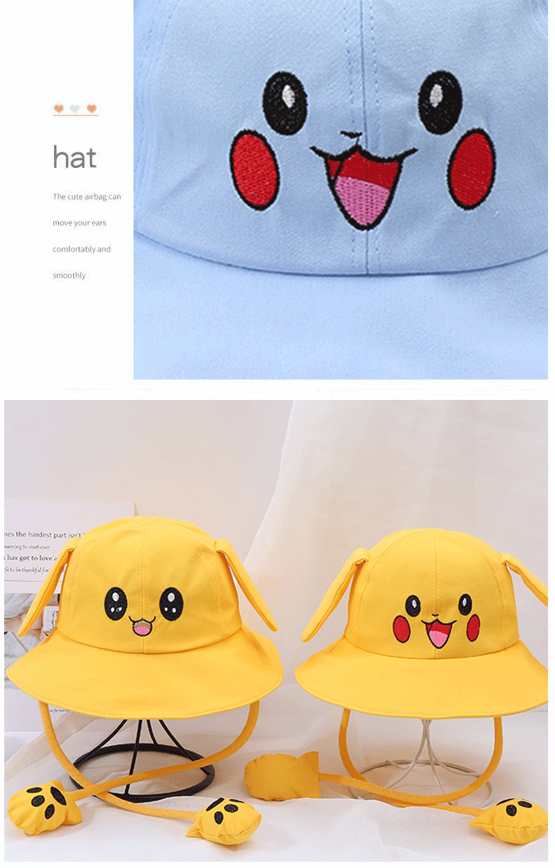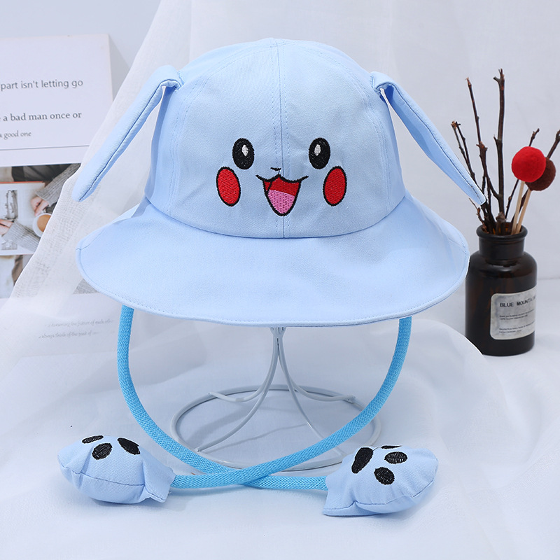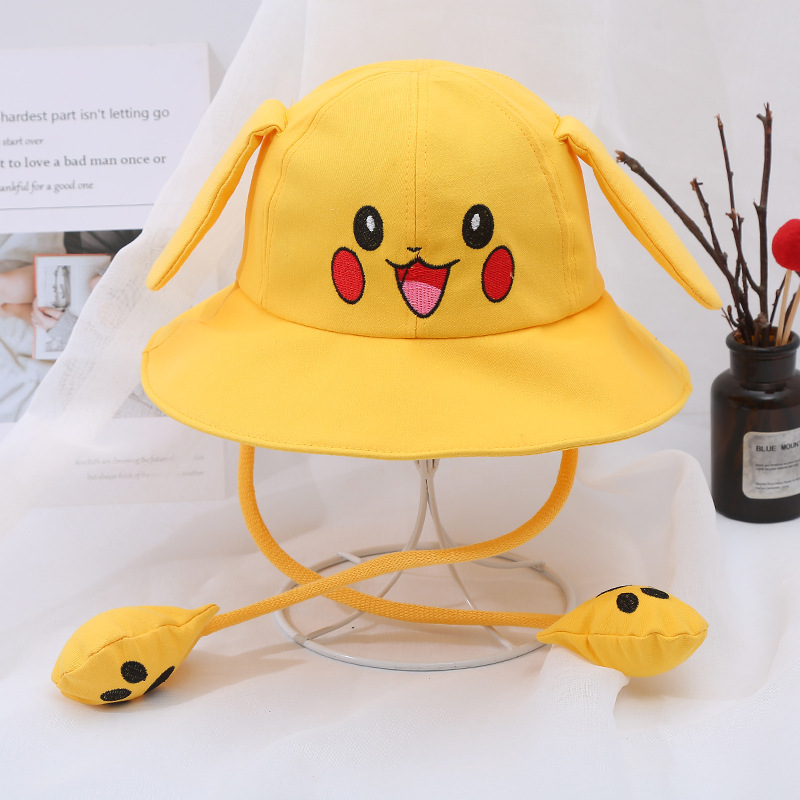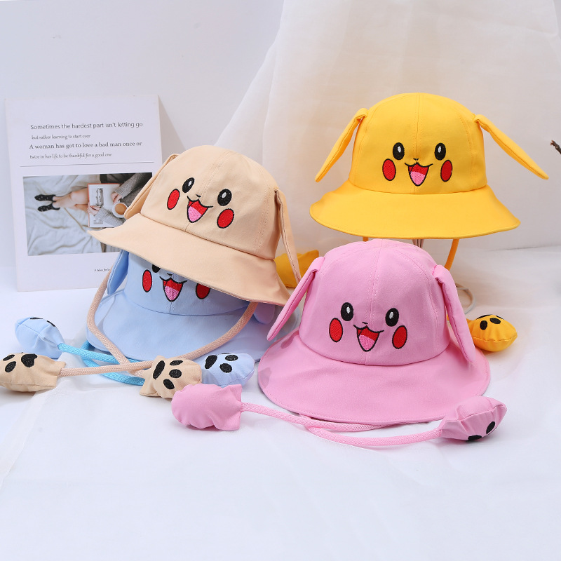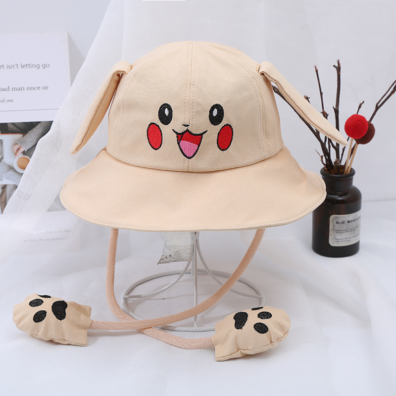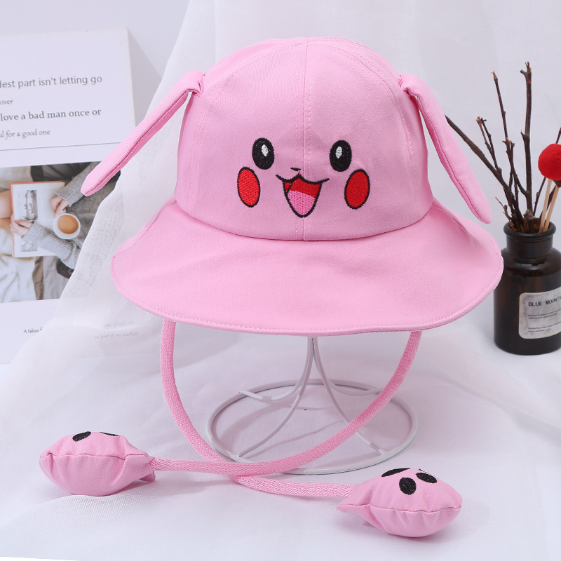 새로운 어린이 면 귀 이동식 차양 어부 모자 피카츄 토끼 부모-자식 모자 관광 명소 천 모자