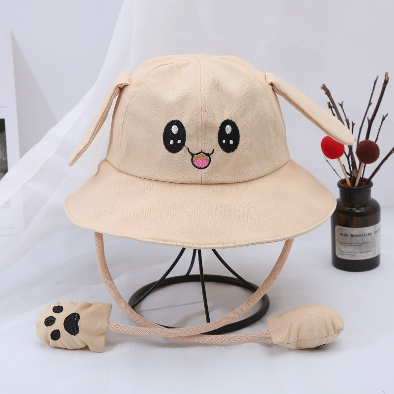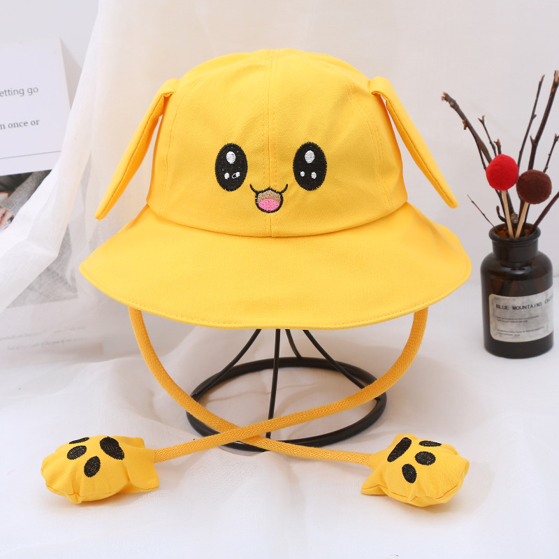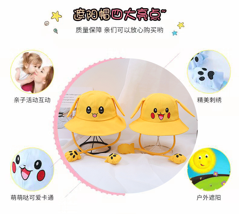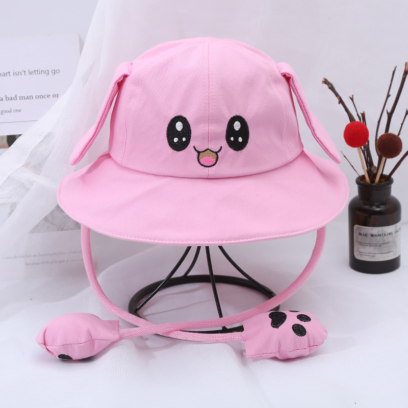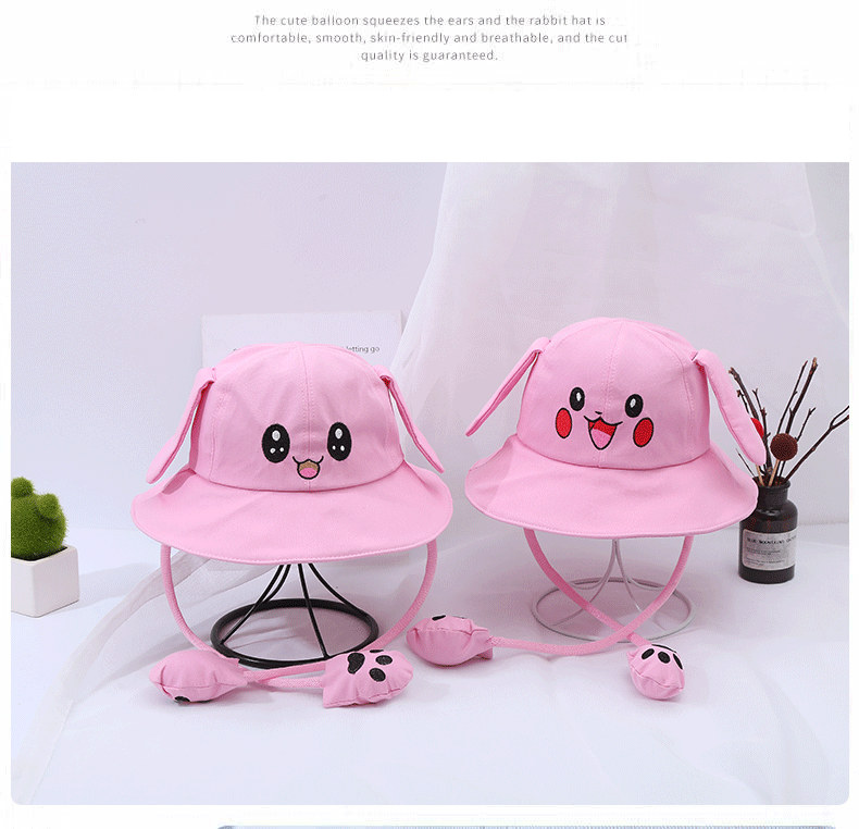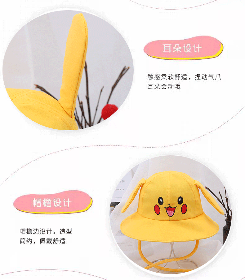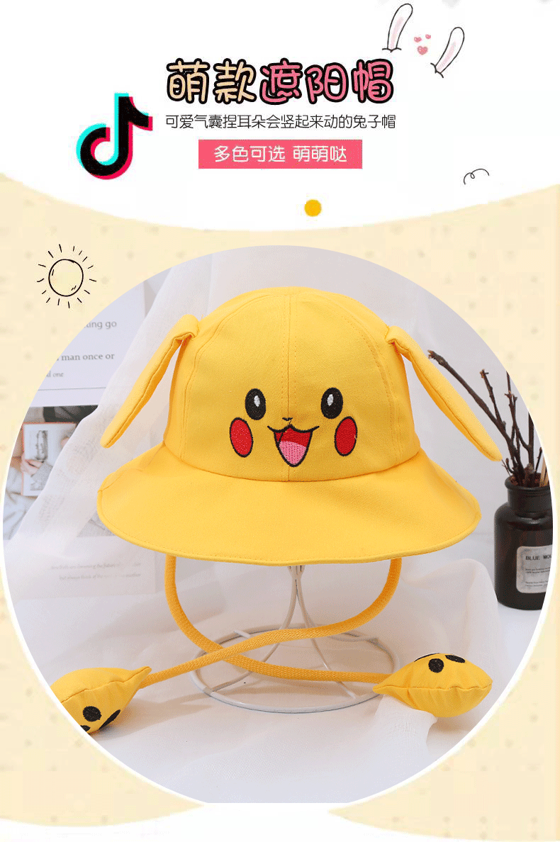 새로운 어린이 면 귀 이동식 차양 어부 모자 피카츄 토끼 부모-자식 모자 관광 명소 천 모자