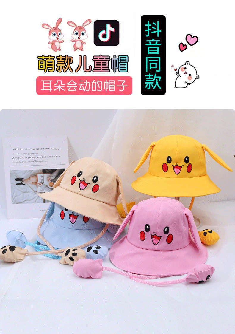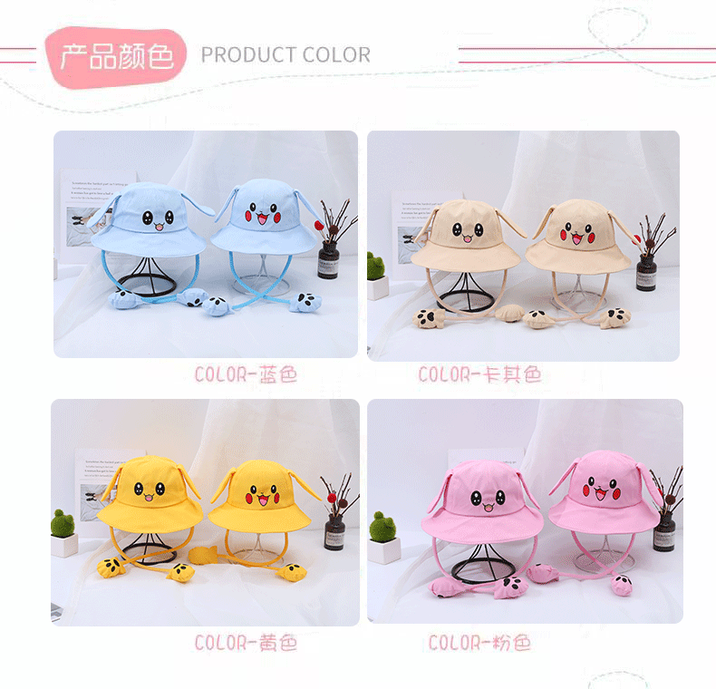 새로운 어린이 면 귀 이동식 차양 어부 모자 피카츄 토끼 부모-자식 모자 관광 명소 천 모자스토어 가기