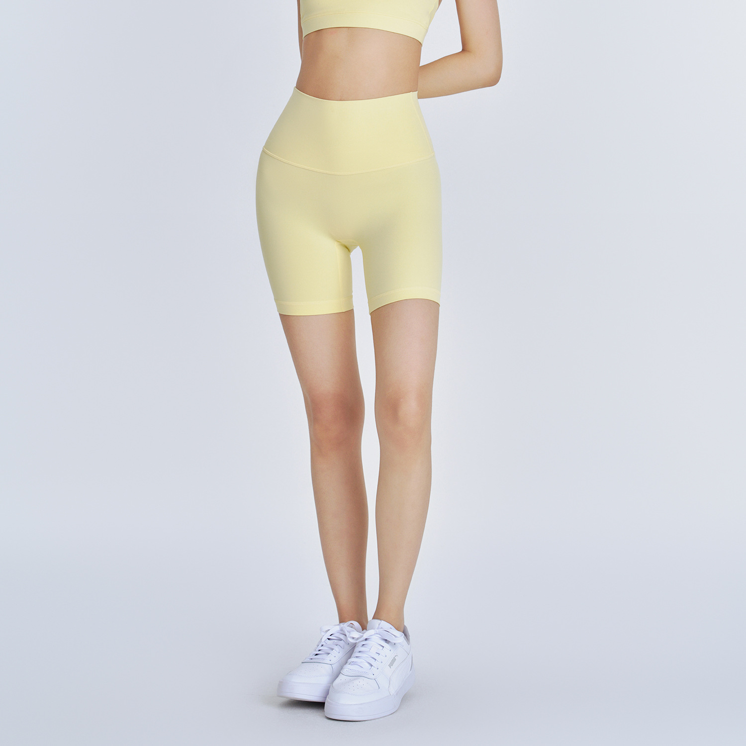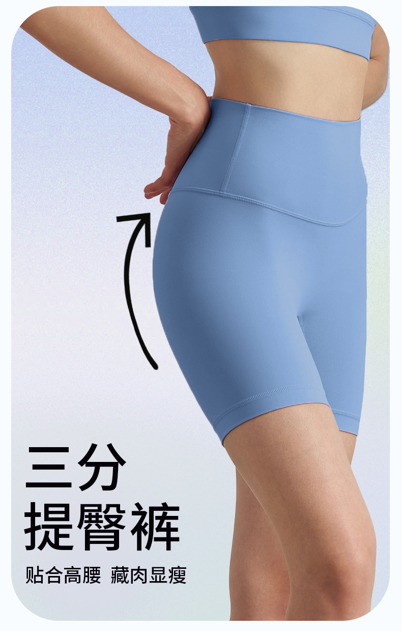 Huanpan 스포츠 반바지 여성 여름 얇은 3 점 야외 훈련 하이 웨이스트 배꼽 리프팅 엉덩이 타이트 사이클링 바지 요가 바지