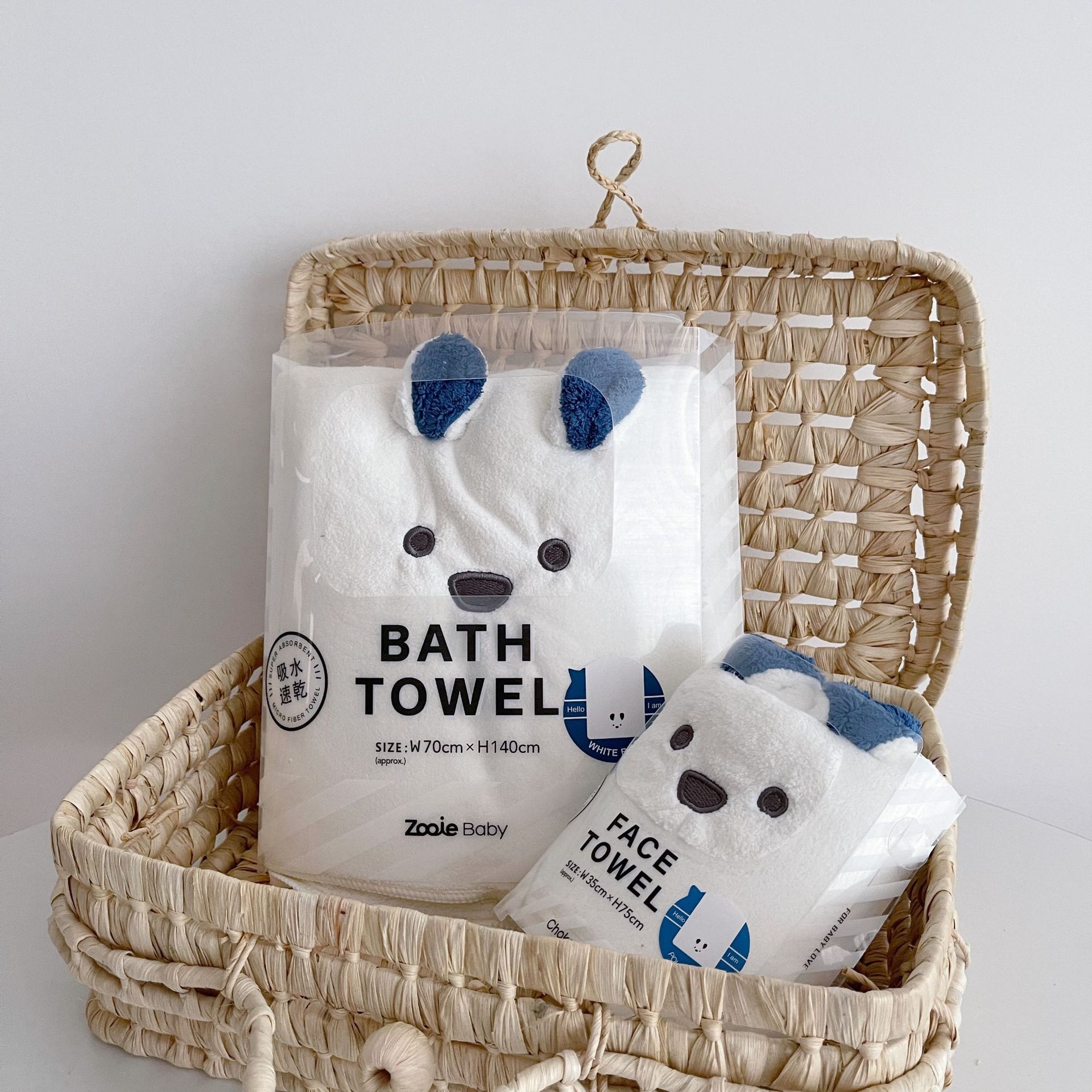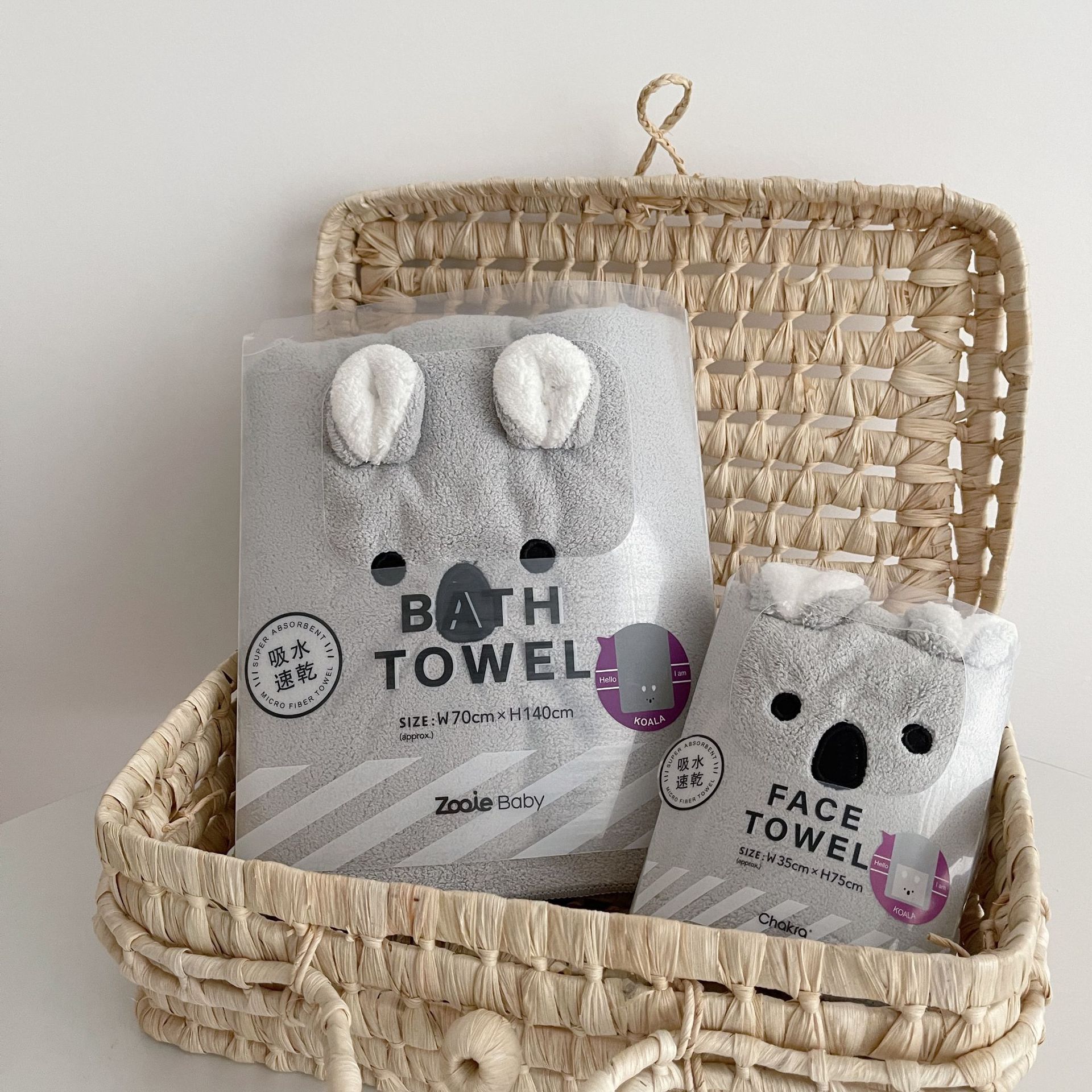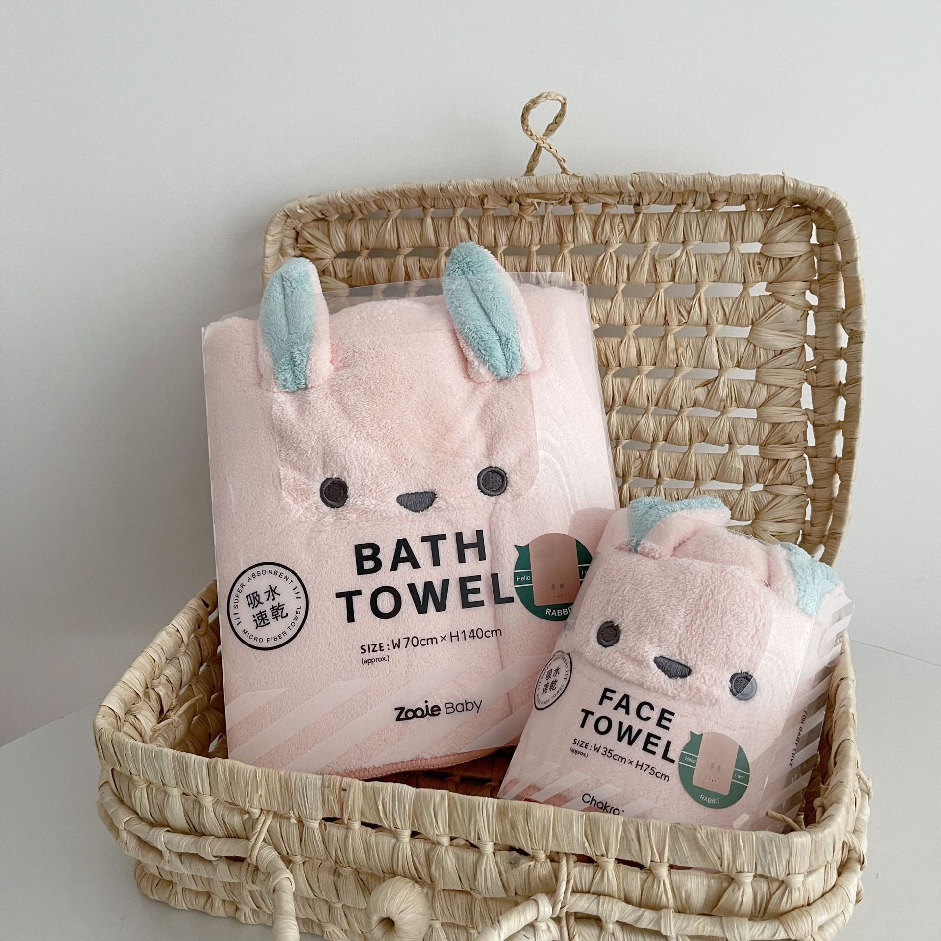 어린이용 산호벨벳 목욕타월 선물세트 (곰돌이 로고 만화 타월, 세안타월, 페이스 타월 포함)스토어 가기