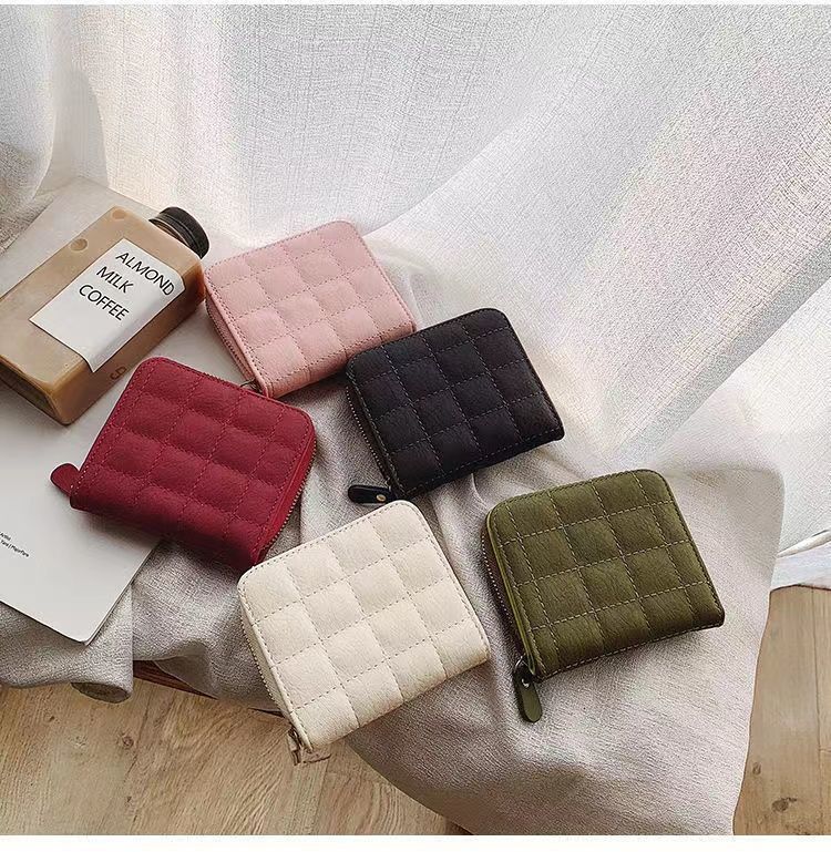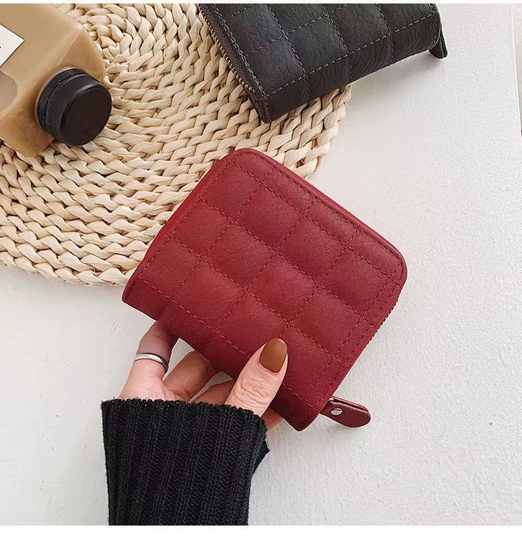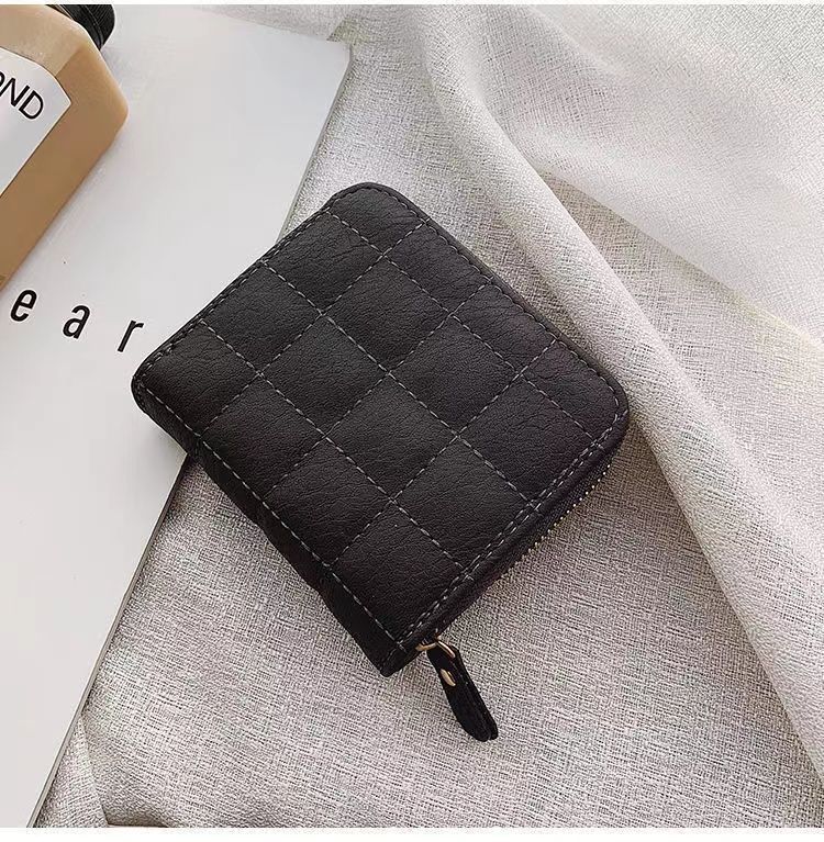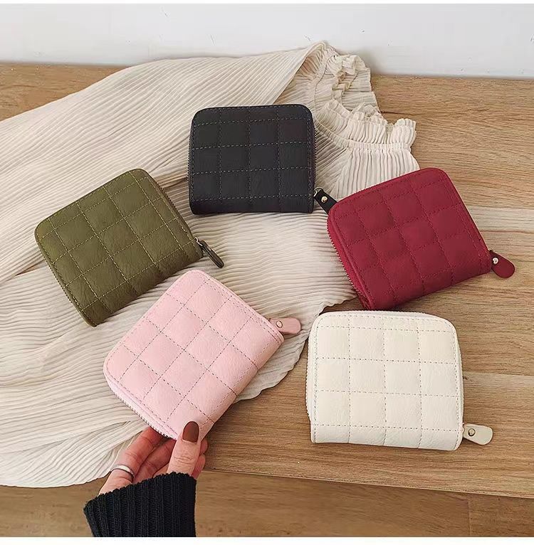 새로운 지갑 여자의 한국 스타일 간단한 미니 격자 무늬 지갑 고등학생 복고풍 짧은 동전 지갑 카드 가방 멀티 카드 슬롯