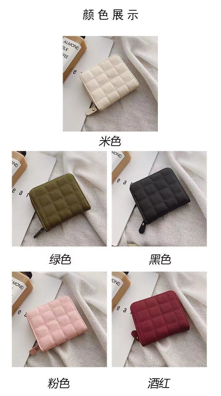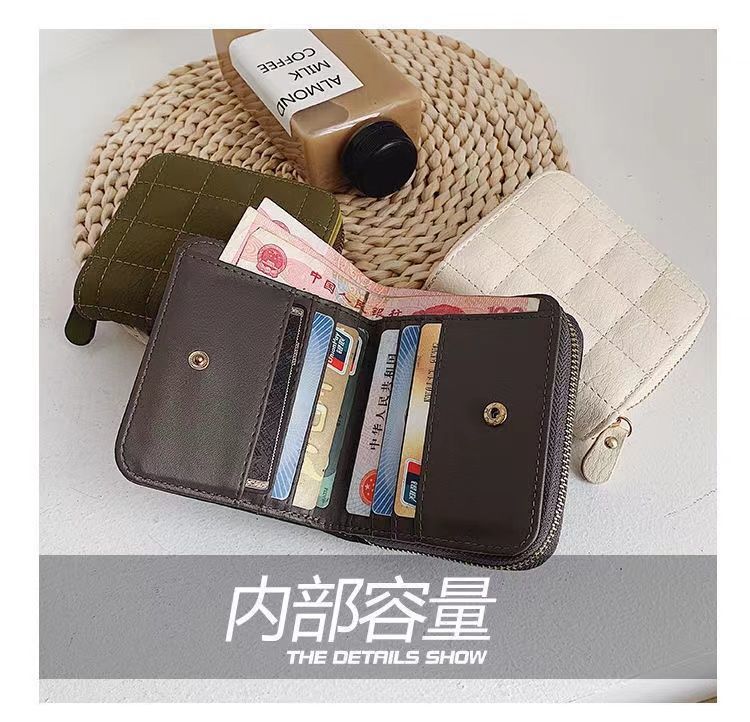 새로운 지갑 여자의 한국 스타일 간단한 미니 격자 무늬 지갑 고등학생 복고풍 짧은 동전 지갑 카드 가방 멀티 카드 슬롯스토어 가기