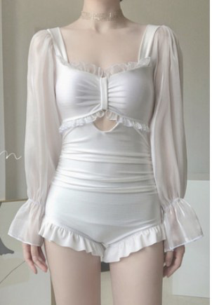 수영복 여자의 온천 보수 요정 한국 원피스 긴팔 살점 취재 슬림해 보이는 학생 덜 여자 수영복