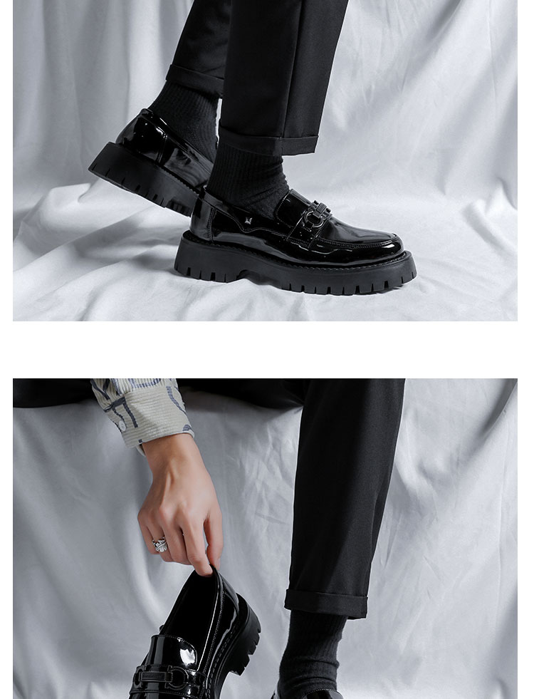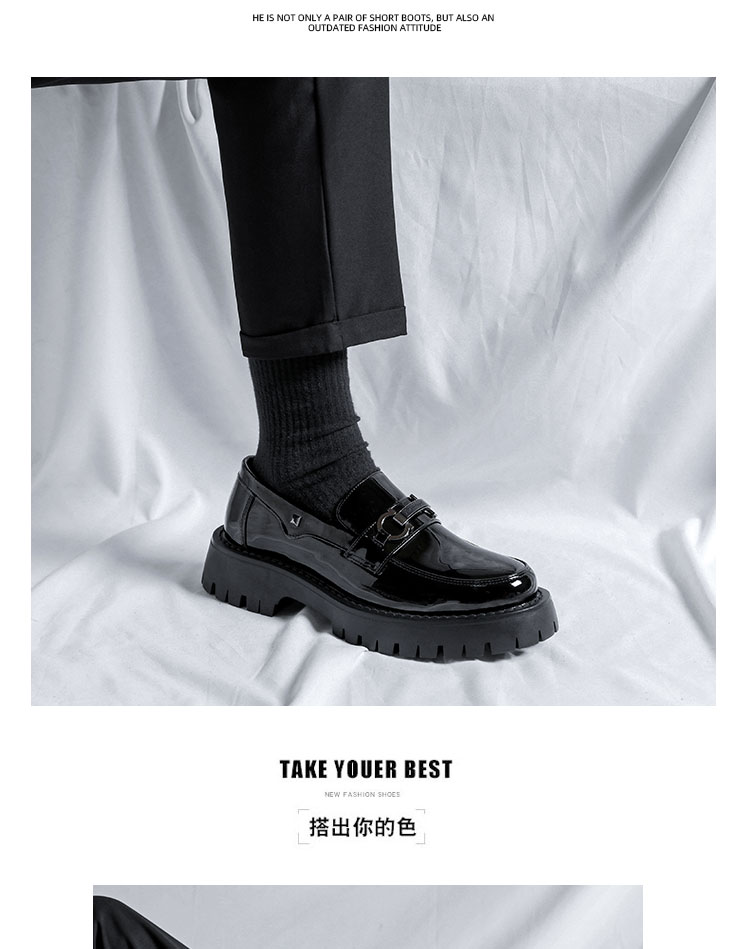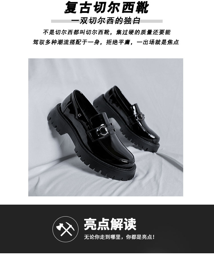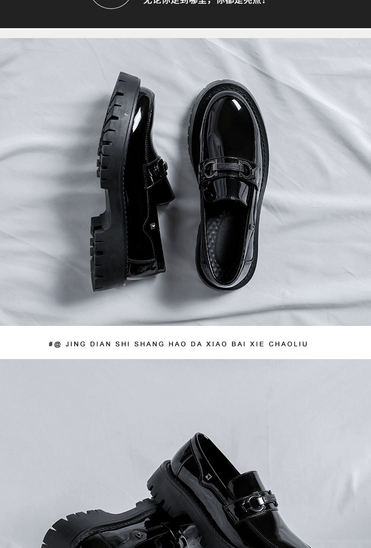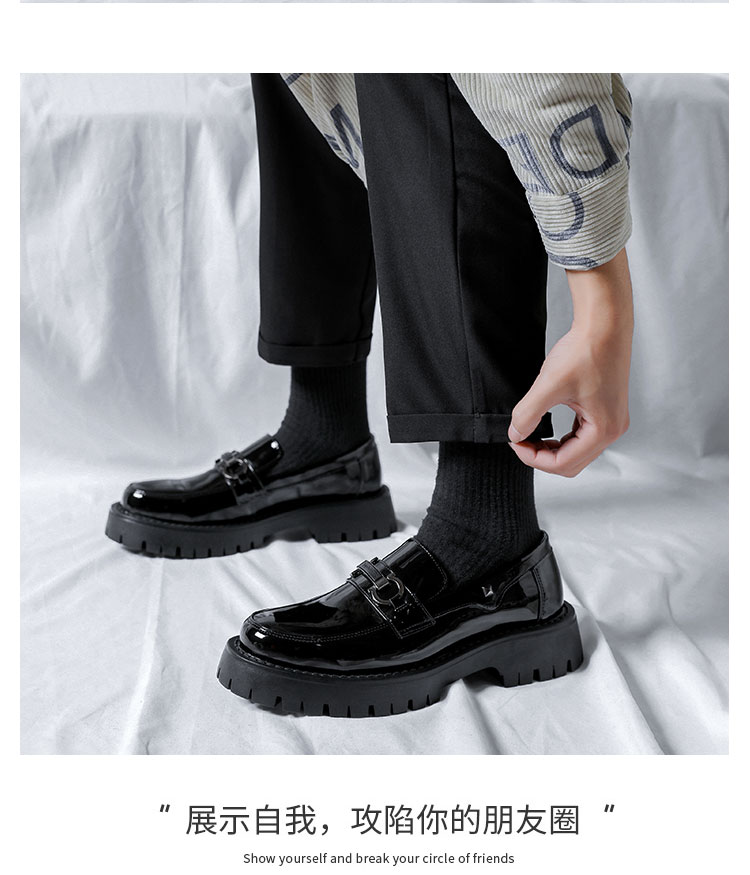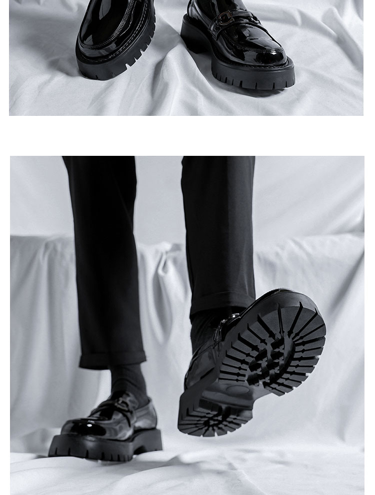 漆皮豆豆鞋男英伦风商务正装厚底懒人一脚蹬休闲皮鞋男结婚新郎鞋
