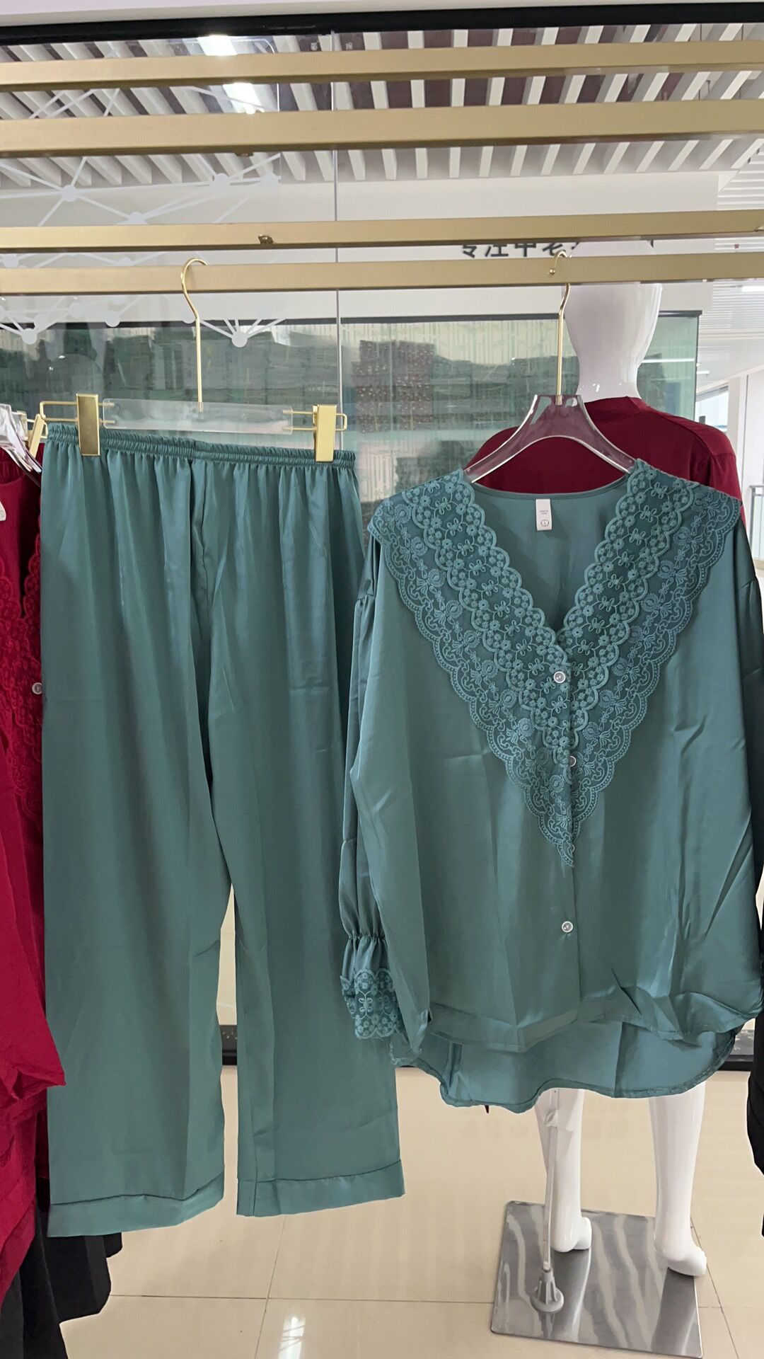 유럽식 잠옷 여성용 봄 2022 새로운 심플 스타일 투피스 세트 여성용 가을 스타일 아이스 실크 홈 의류스토어 가기
