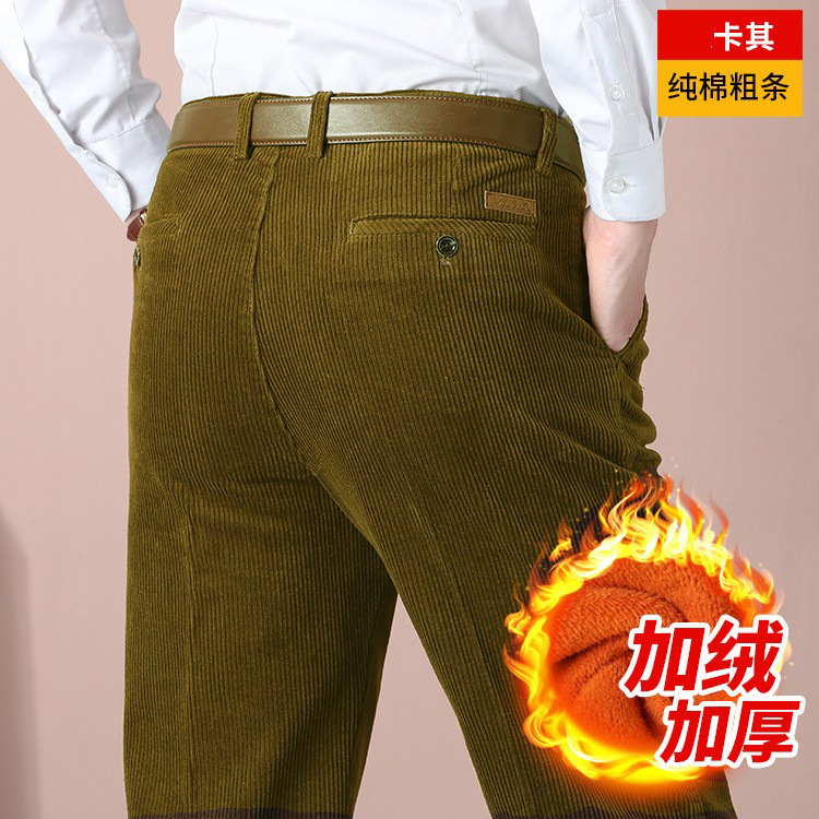 겨울 기모 두꺼운 코듀로이 캐주얼 바지 중년 하이 웨이스트 느슨한 코듀로이 비즈니스 남성 바지 두꺼운 스트레이트 바지