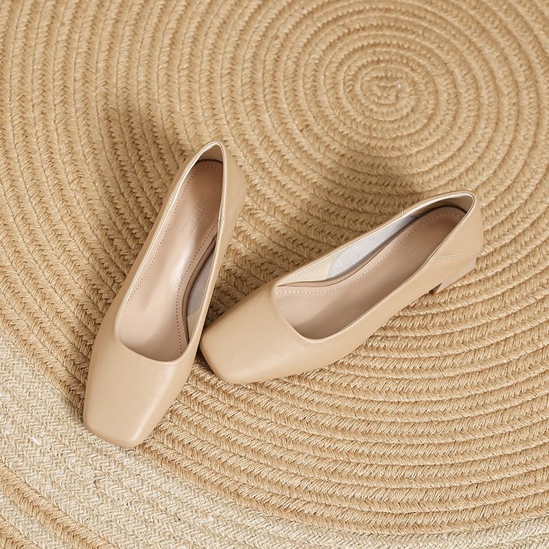 여성을위한 정품 가죽 신발 2025 새로운 봄 전문 통근 프랑스어 두꺼운 뒤꿈치 중간 발 뒤꿈치 광장 발가락 OL 얕은 입 작업 여성 신발스토어 가기