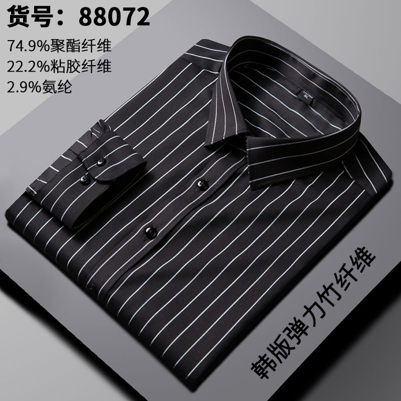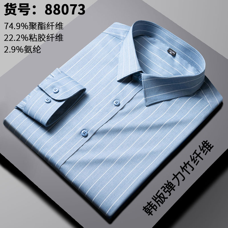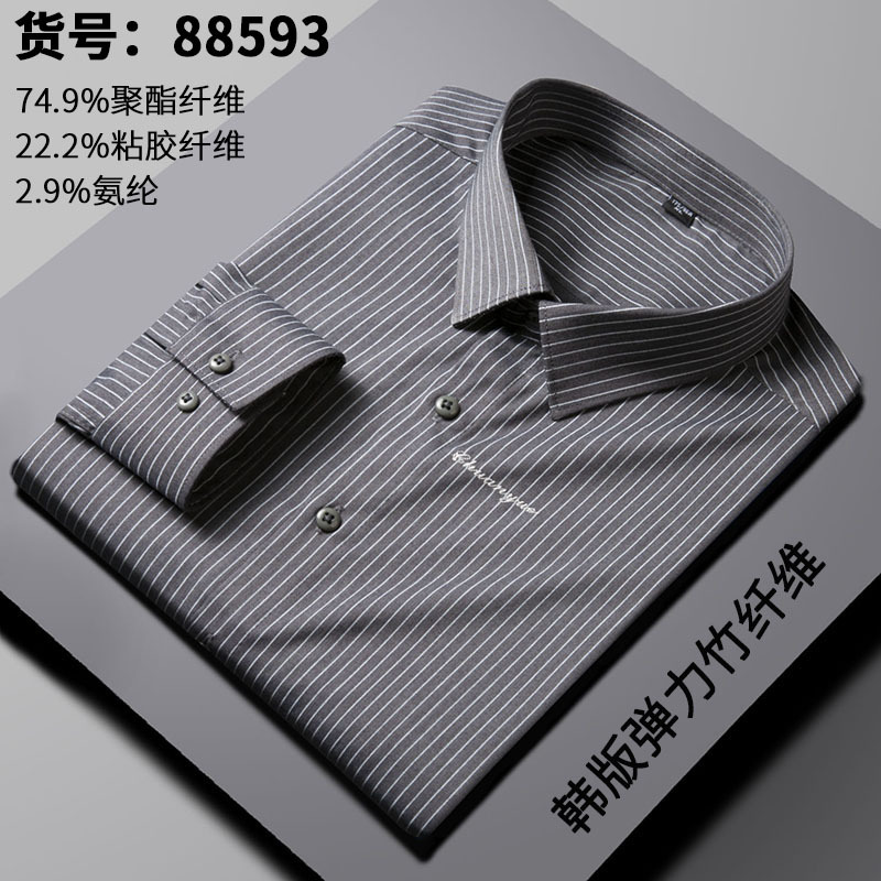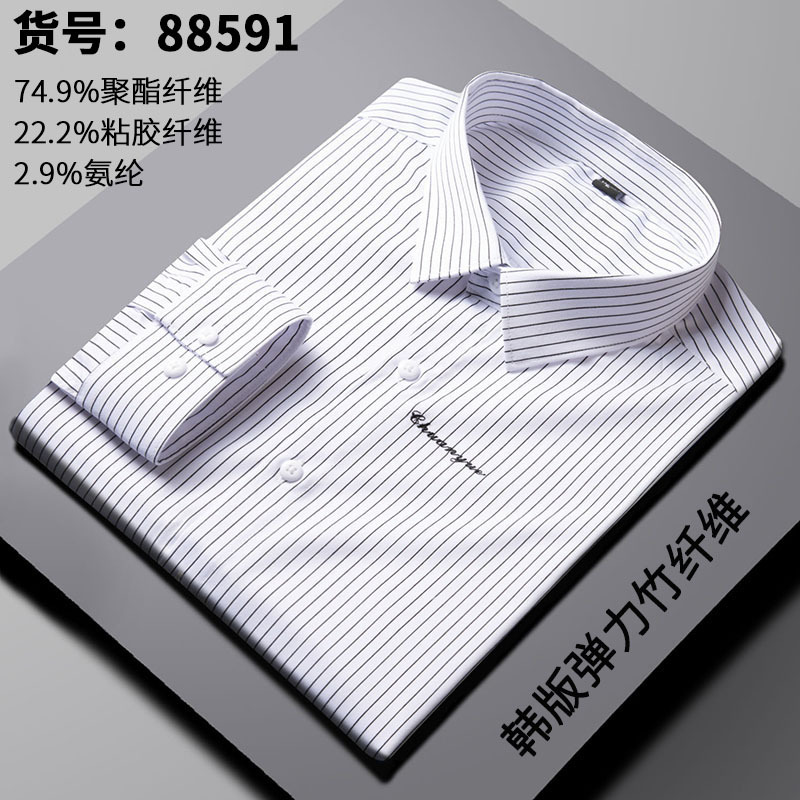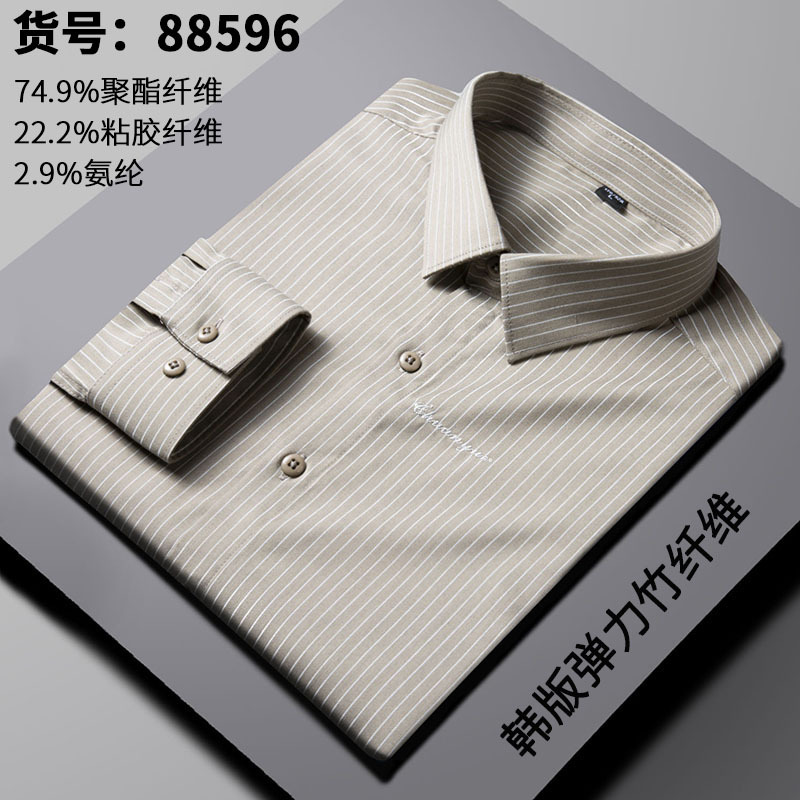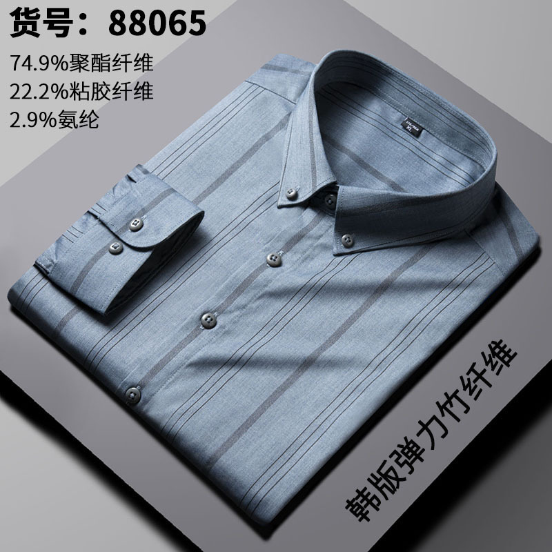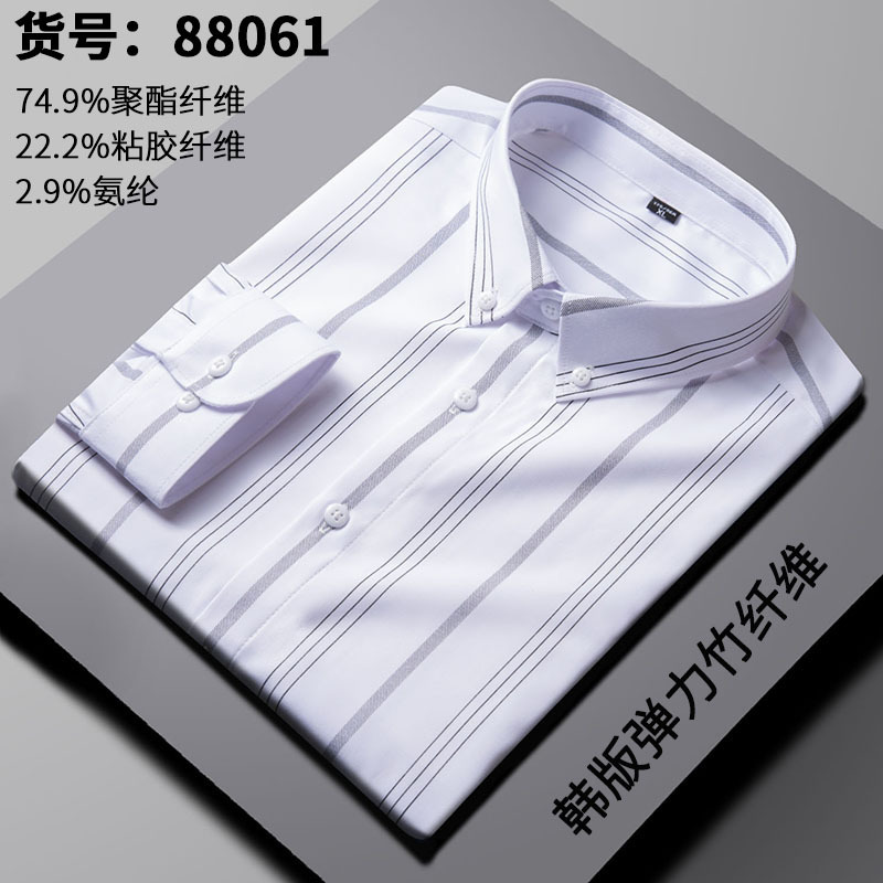 대나무 섬유 한국식 슬림핏 긴팔 셔츠 남성용 스트라이프 탄성 비 철 셔츠 청소년 편안한 비즈니스 캐주얼스토어 가기
