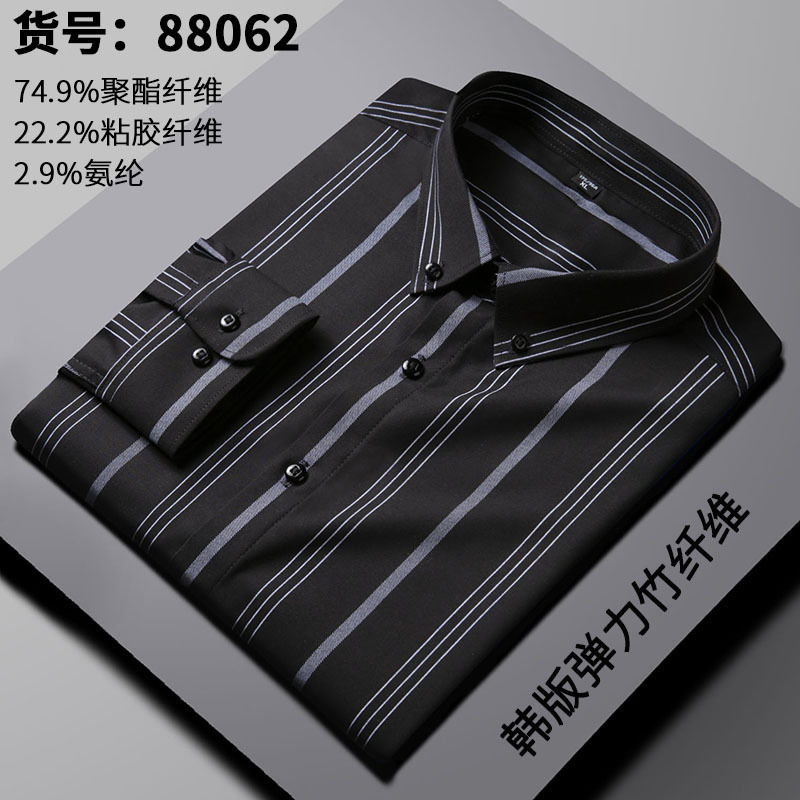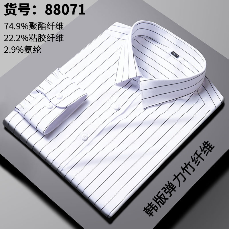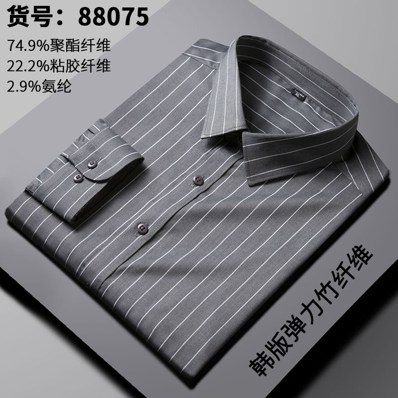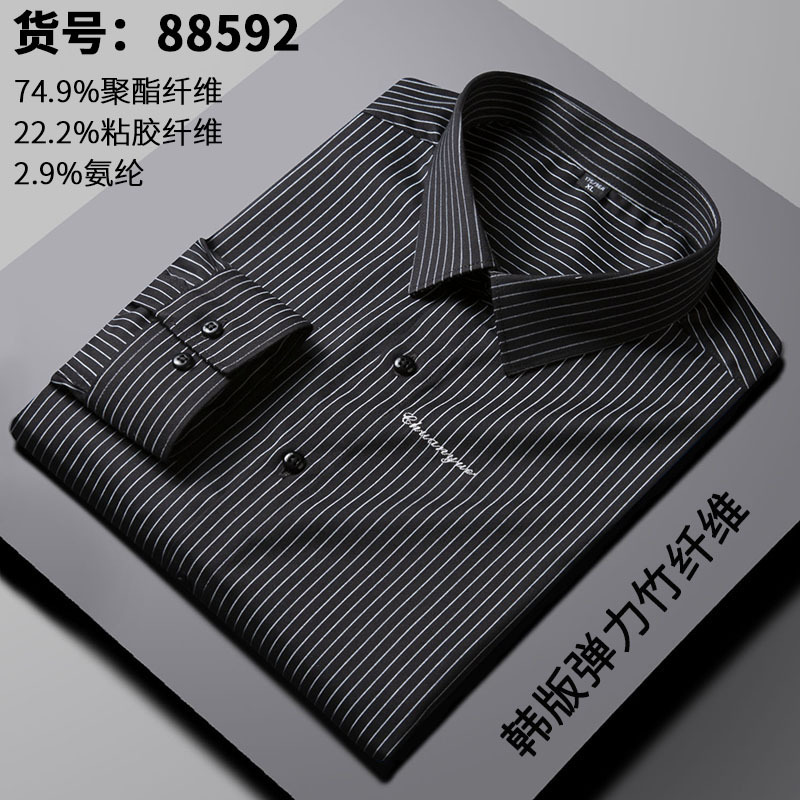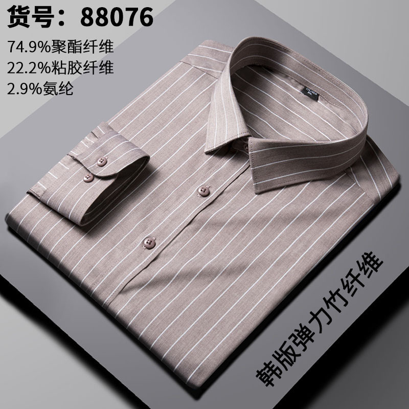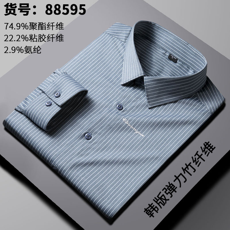 대나무 섬유 한국식 슬림핏 긴팔 셔츠 남성용 스트라이프 탄성 비 철 셔츠 청소년 편안한 비즈니스 캐주얼스토어 가기