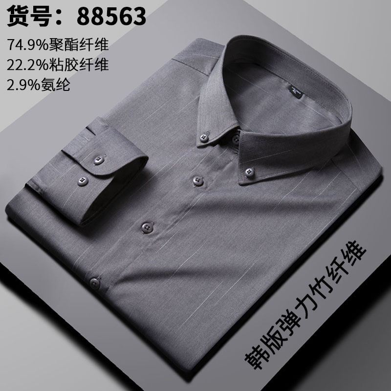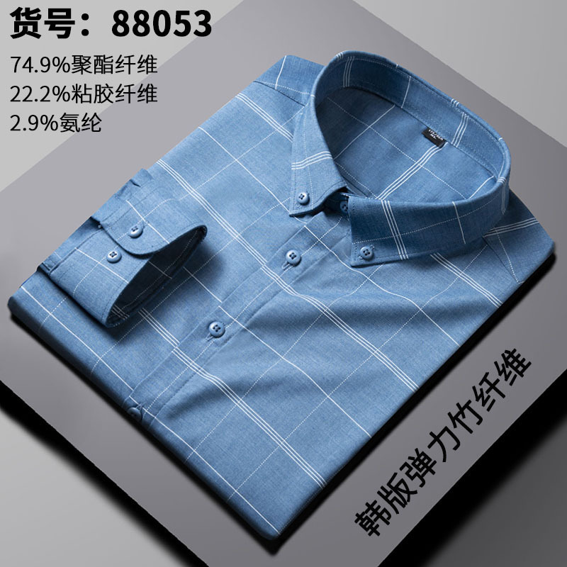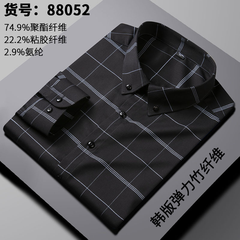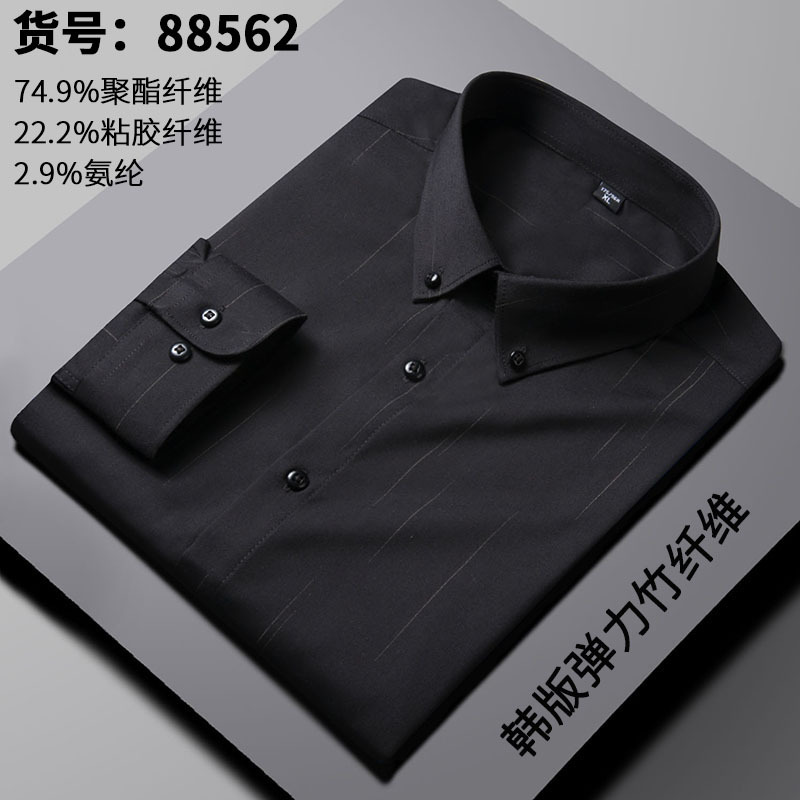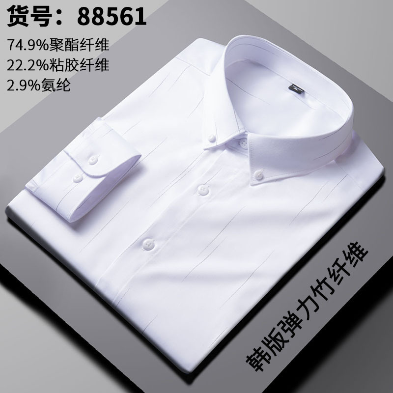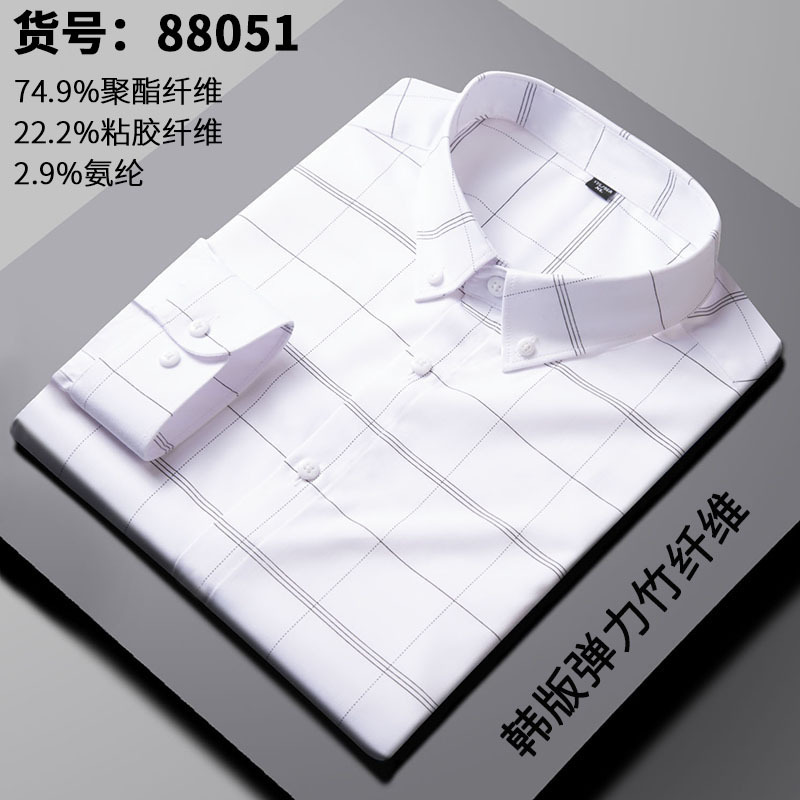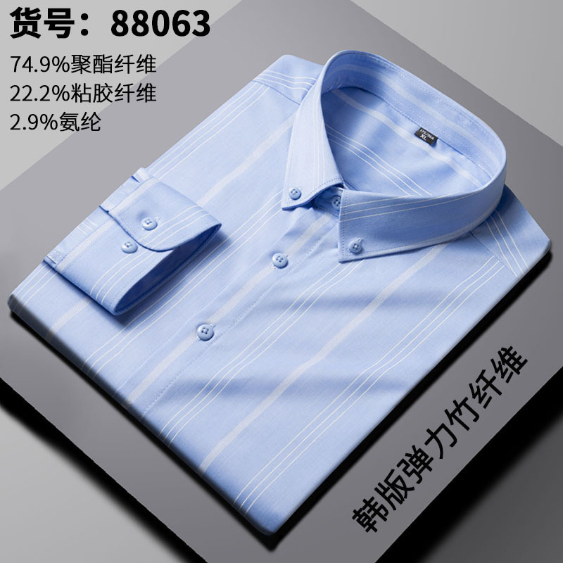 대나무 섬유 한국식 슬림핏 긴팔 셔츠 남성용 스트라이프 탄성 비 철 셔츠 청소년 편안한 비즈니스 캐주얼스토어 가기