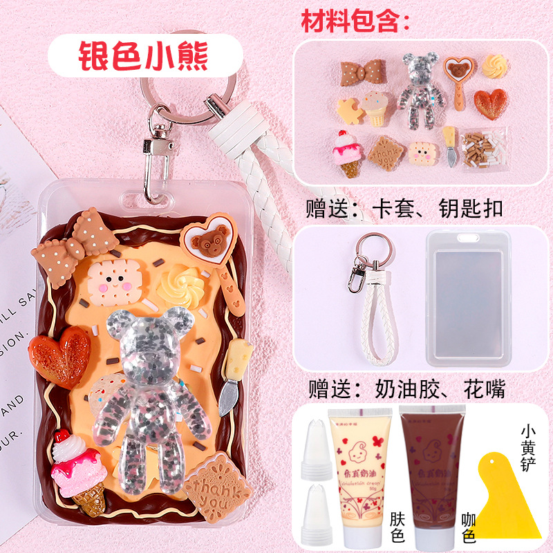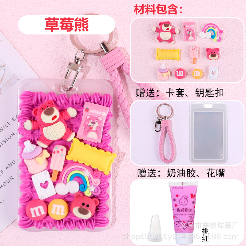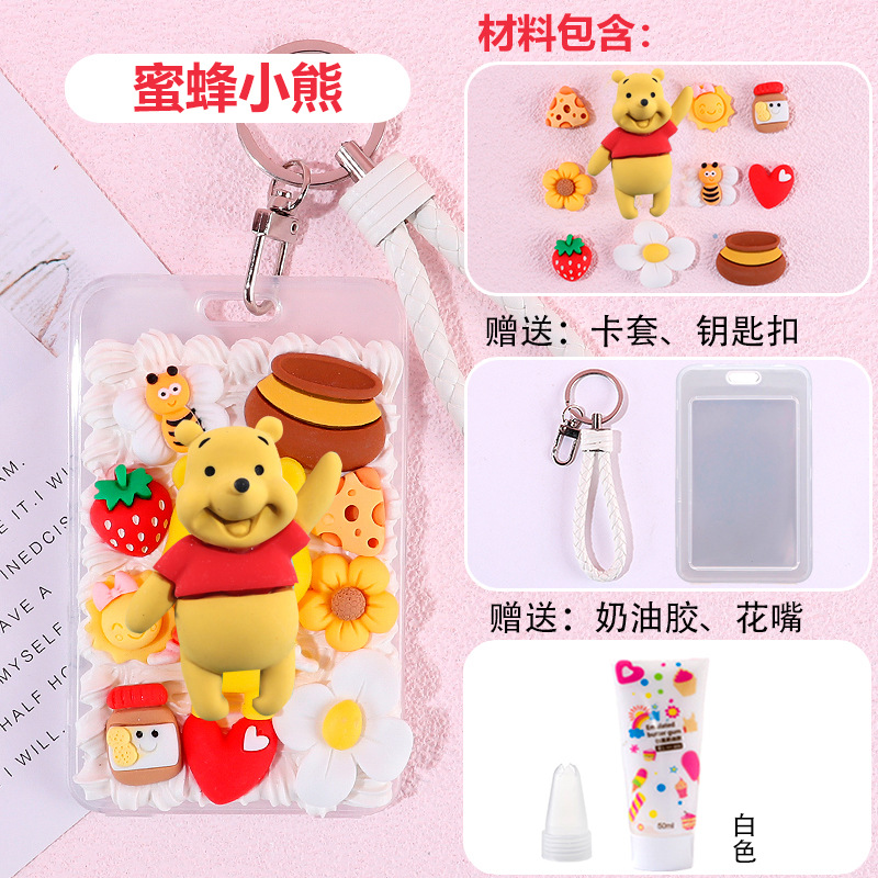 학생 버스 카드 세트 DIY 크림 고무 소재 가방 증명서 세트 선물 만화 인형 곰 오리 귀여운