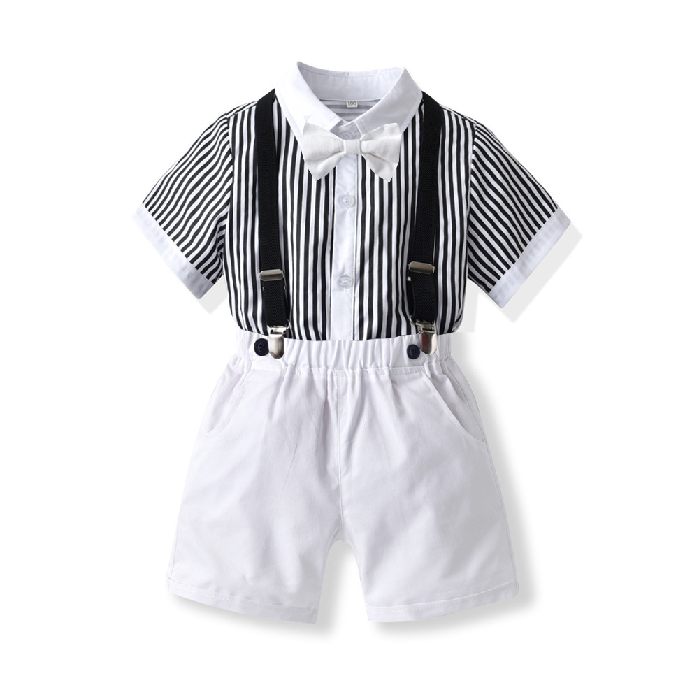 국경 간 소년 줄무늬 반팔 셔츠 서스펜더 반바지 신사 세트 중소 어린이 보물 여름 61 공연 선물스토어 가기