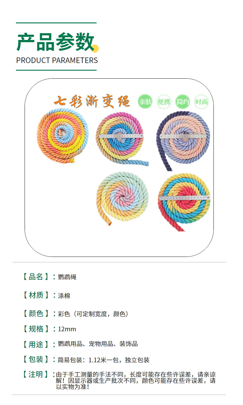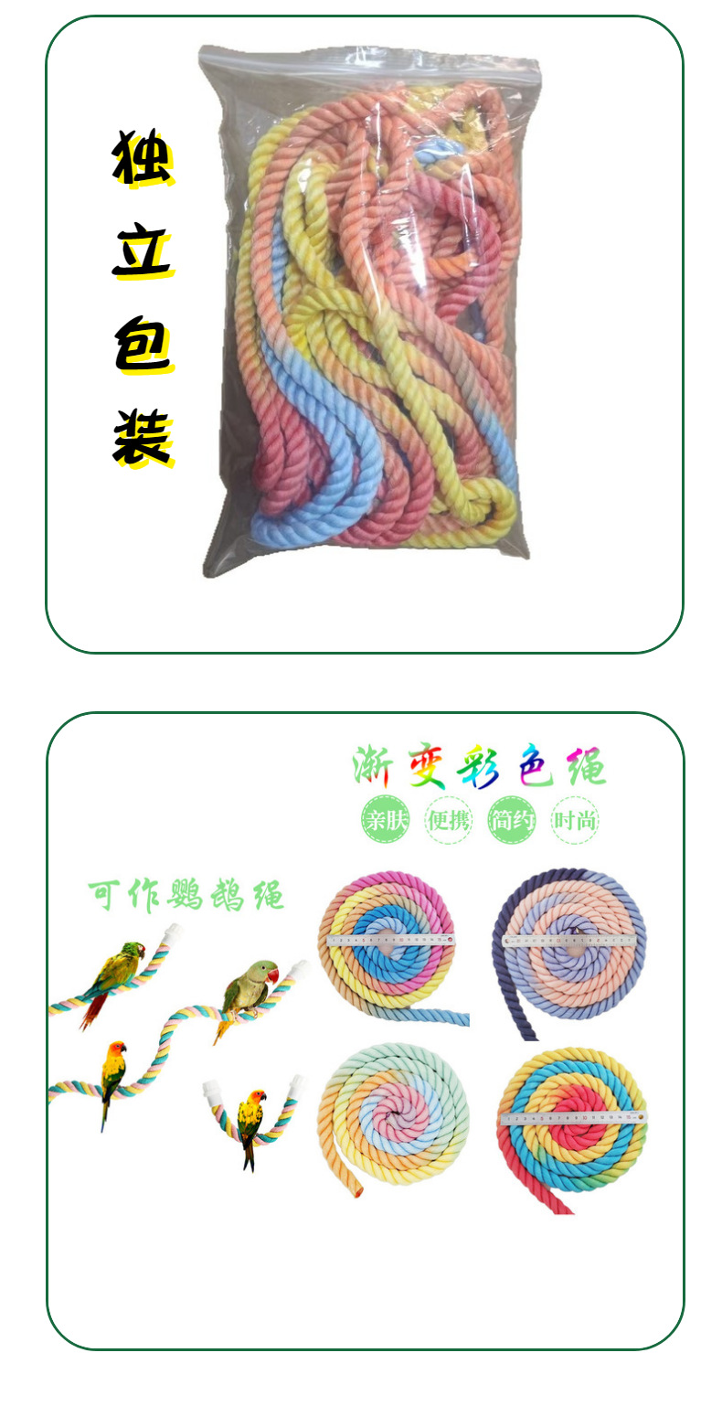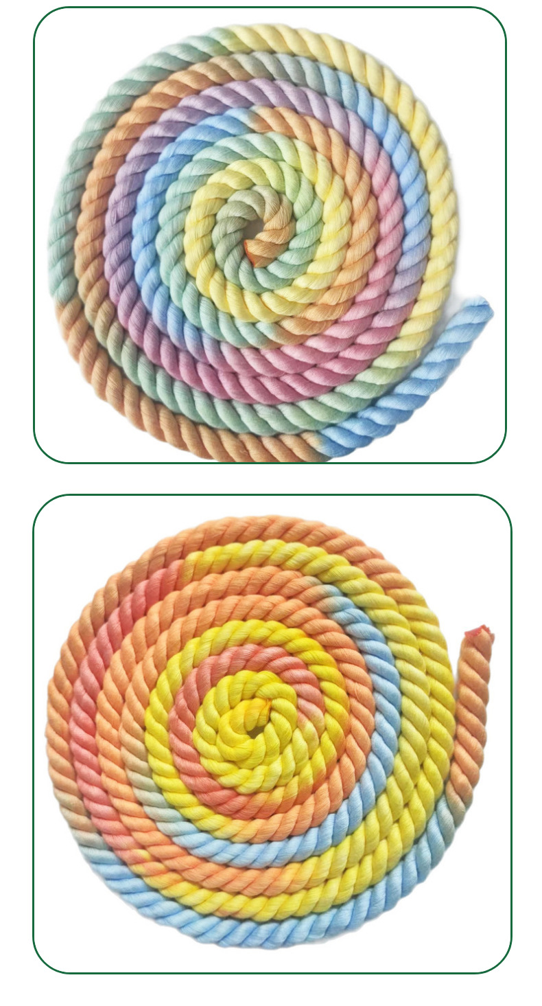 12mm 앵무새 스탠딩 로프, 그라데이션 로프, 앵무새 로프, 3가닥 꼬임 로프, 레인보우 로프, 애완동물 가죽끈, 강아지 가죽끈, 섹션 염색 로프