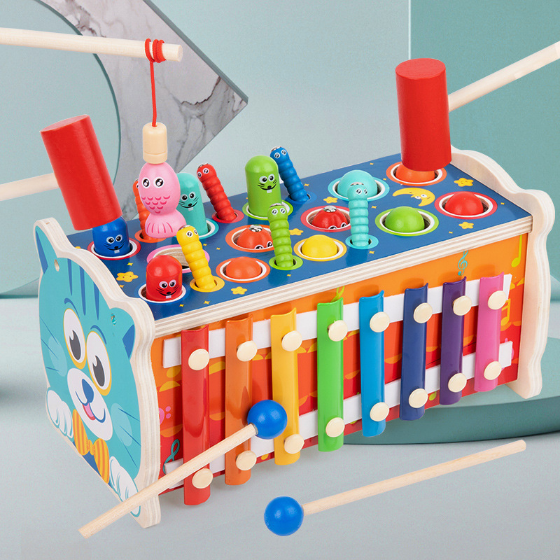 어린이 다기능 사자 햄스터 게임 아기 퍼즐 조기 교육 무 잡기 벌레 나무 장난감을 당기는 피아노 연주