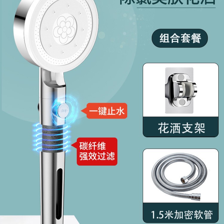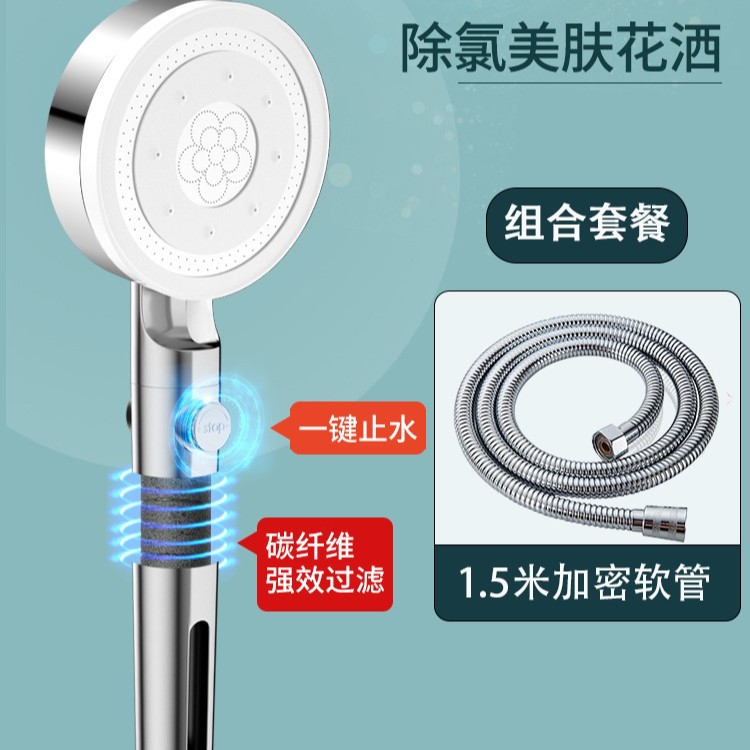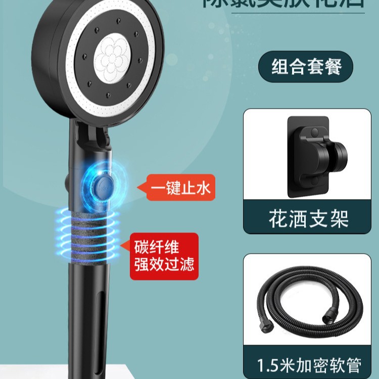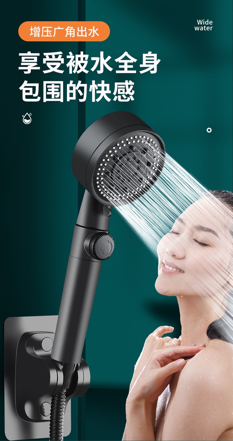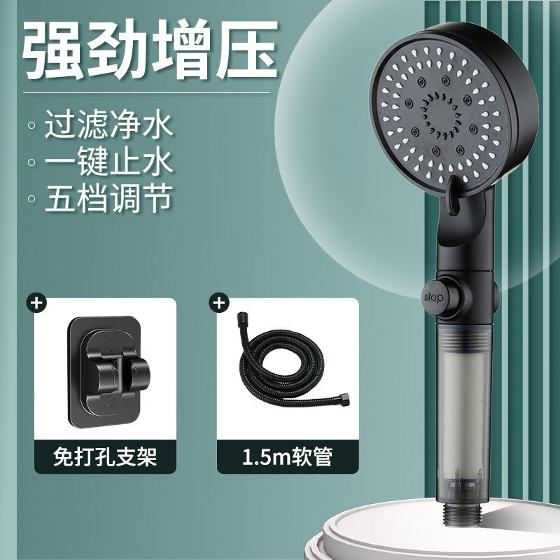 국경 간 블랙 사무라이 매직 5 단 샤워 노즐 압력 샤워 세트 비 꽃 태양 머리 물 정류장 로터스 캐노피