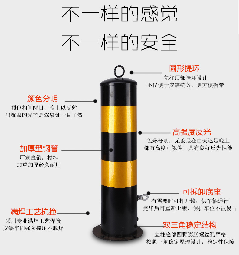경고 기둥을 두껍게 한 강철 파이프 보호 난간 도로 땅 더미 고정 파일 격리 기둥 바리케이드 철 기둥 충돌 방지 칼럼