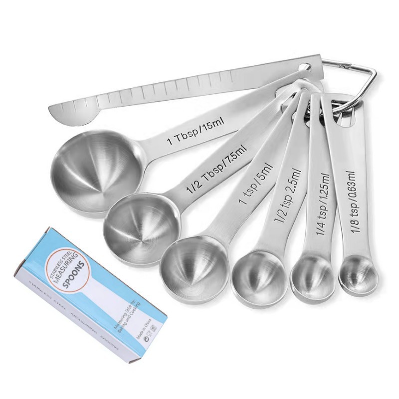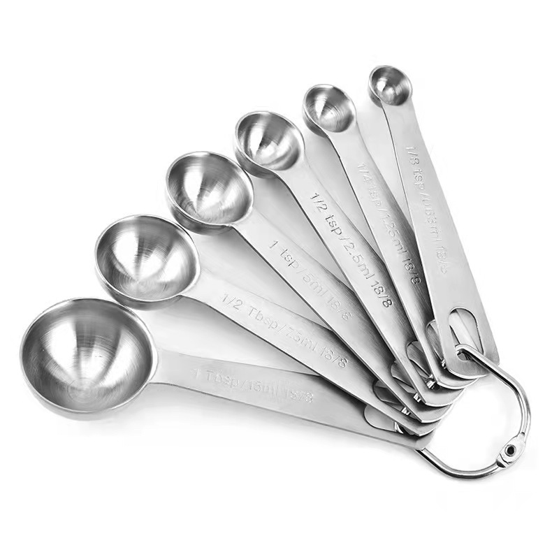 스테인레스 스틸 측정 스푼 라운드 측정 스푼 6 조각 세트 7 조각 세트 베이킹 스케일 측정 조미료 스푼 요리 스푼 세트스토어 가기