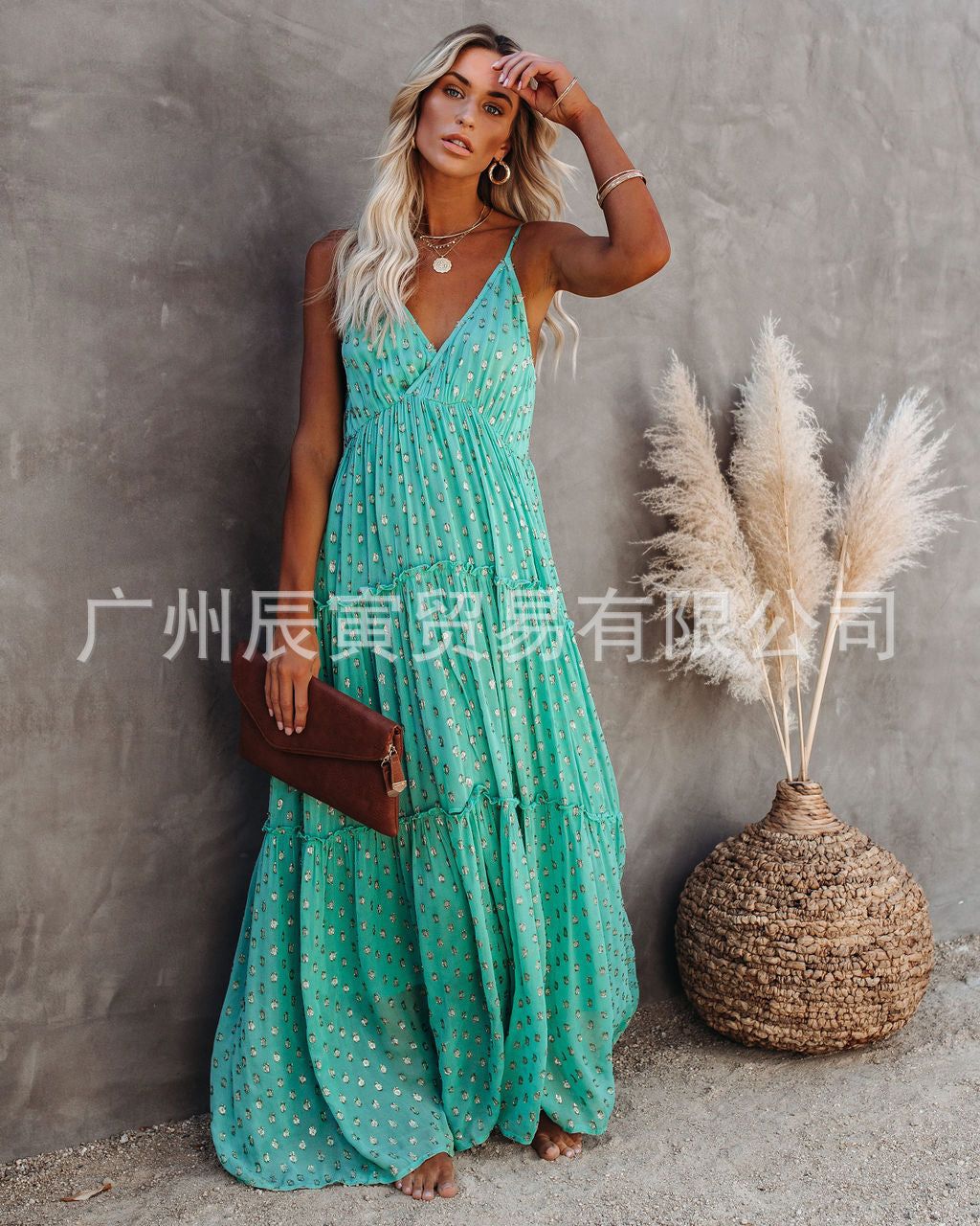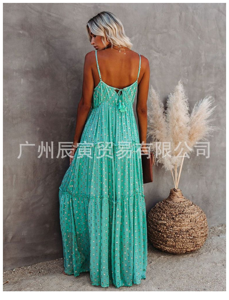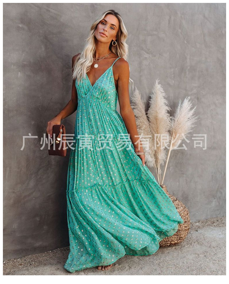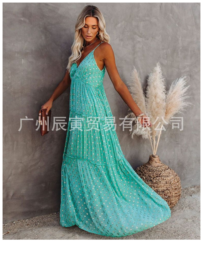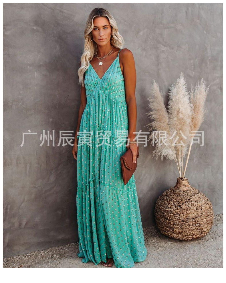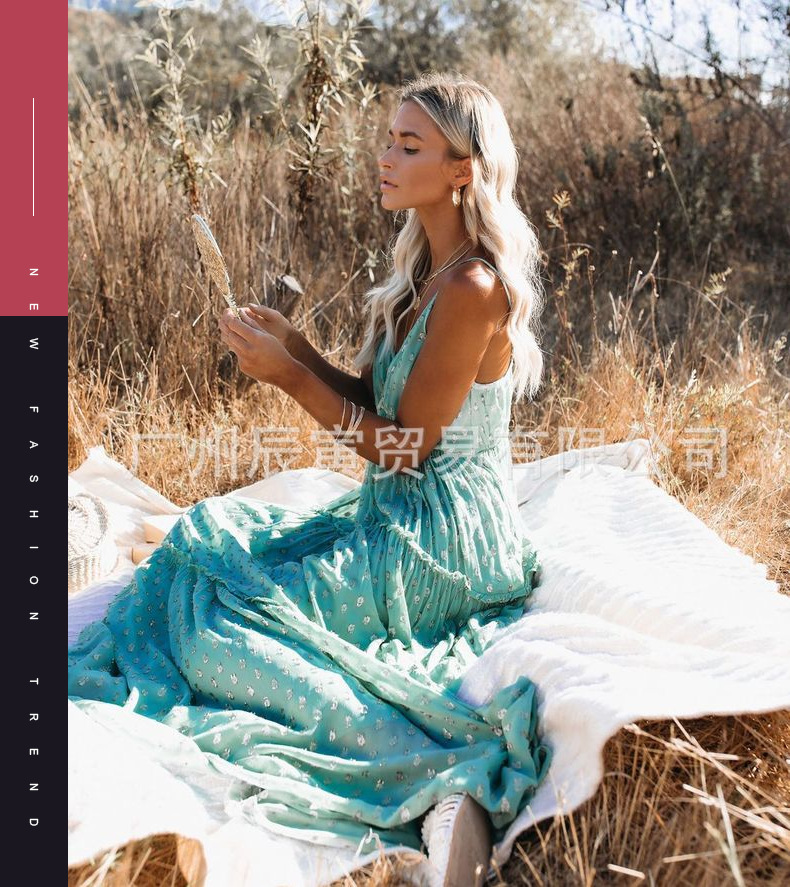 뜨거운 판매 유럽과 미국 레저 여성 의류 봄과 여름 레오파드 무늬 신선한 슬링 민소매 V 넥 주름 원피스 (전체 안감스토어 가기