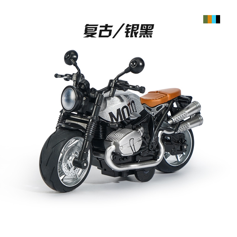 밍위안 신제품 1:12 레트로 블루 합금 오토바이 후진 기능 및 사운드/라이트 모델 남자아이 생일 선물