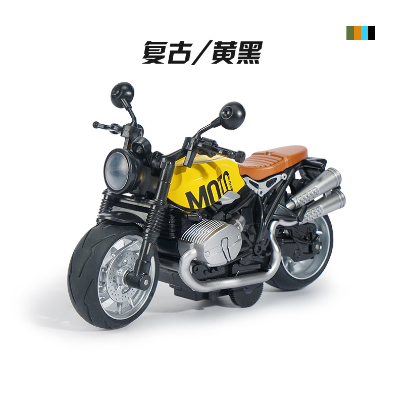 밍위안 신제품 1:12 레트로 블루 합금 오토바이 후진 기능 및 사운드/라이트 모델 남자아이 생일 선물스토어 가기