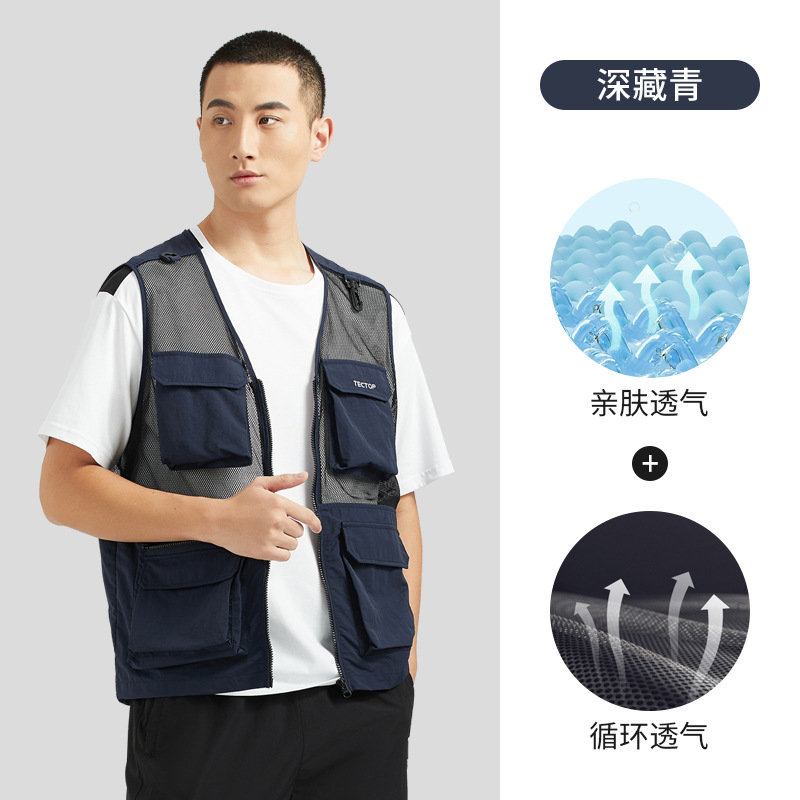 Tantuo 야외 남성 조끼 봄과 여름 메쉬 통기성 멀티 포켓 양복 조끼 속건 낚시 조끼 레저 조끼