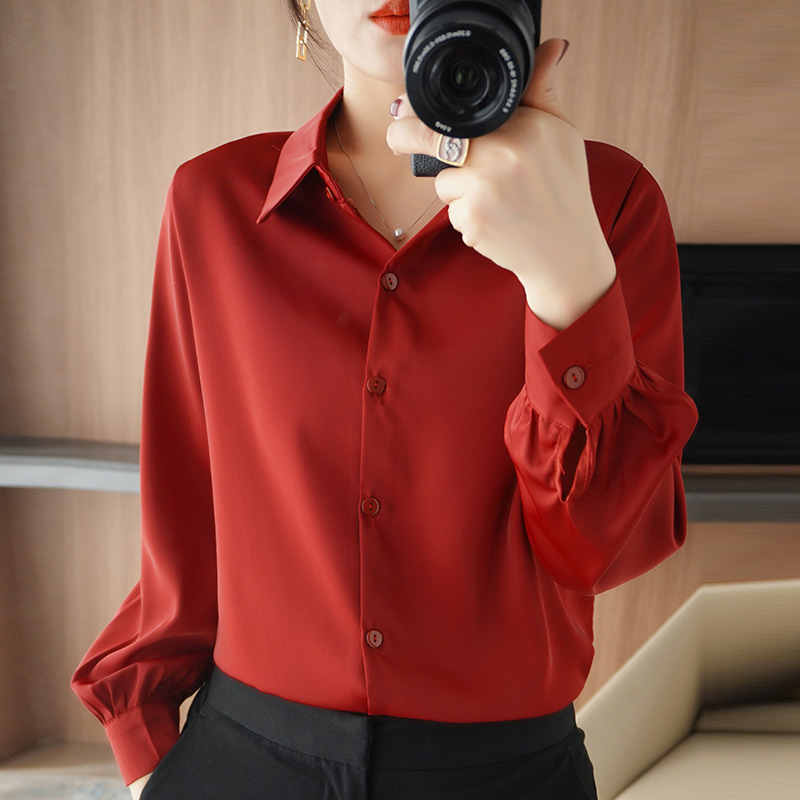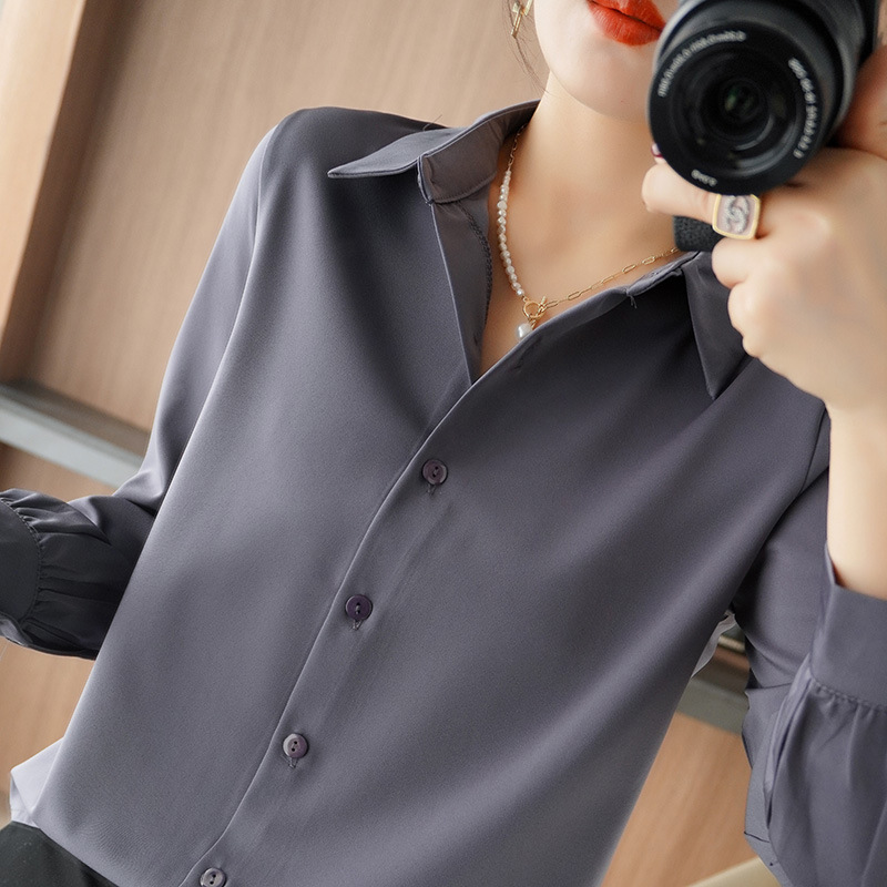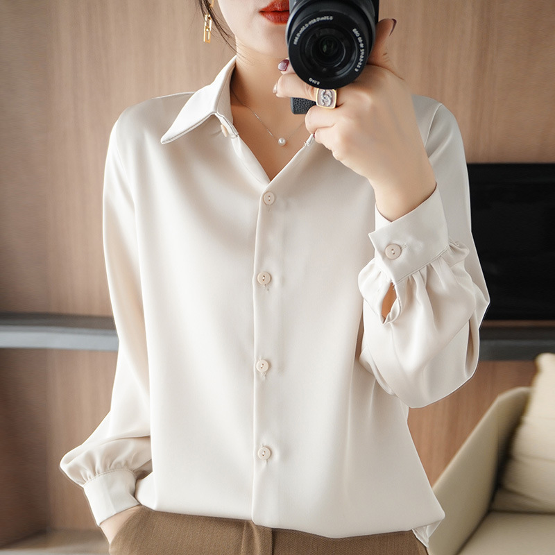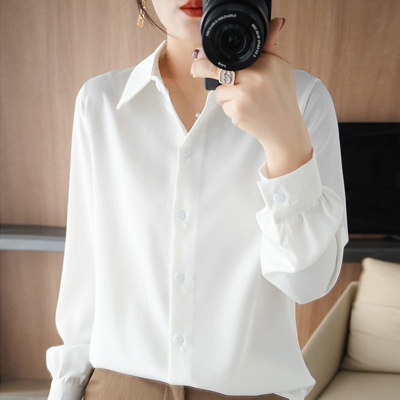 2022 봄 새로운 새틴 화이트 셔츠 여성의 긴 소매 느슨한 플러스 사이즈 아이스 실크 탑 실크 모조 셔츠 여성 의류스토어 가기
