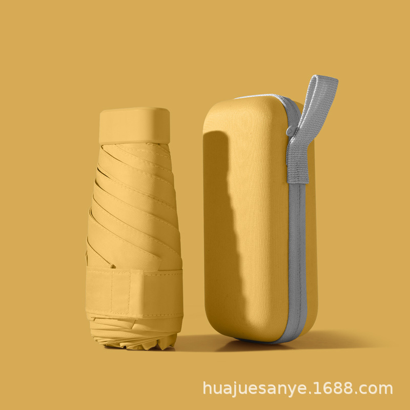 • [두꺼운 검은 접착제] 평평한 6 배 캡슐 우산-노란색