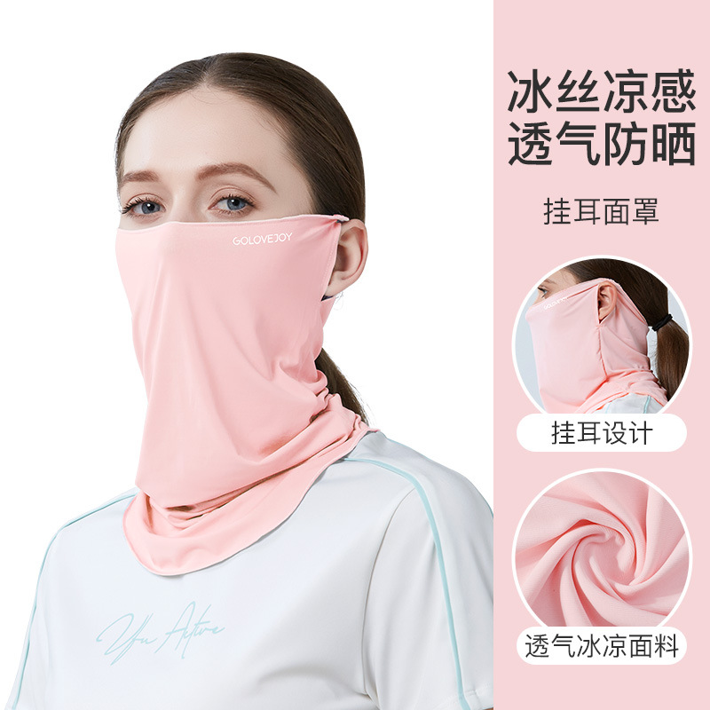 여름 교수형 이어 썬 마스크 여성용 야외 라이딩 운전 쿨 아이스 실크 표면 거즈 자외선 방지 얼굴 및 목 보호스토어 가기