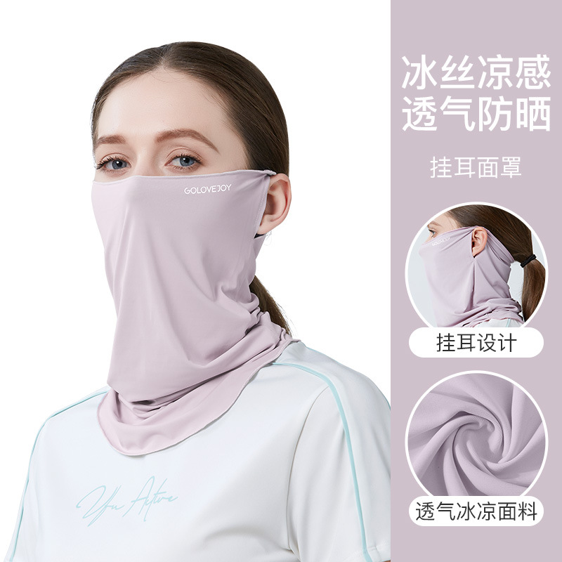 여름 교수형 이어 썬 마스크 여성용 야외 라이딩 운전 쿨 아이스 실크 표면 거즈 자외선 방지 얼굴 및 목 보호